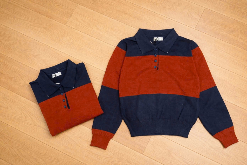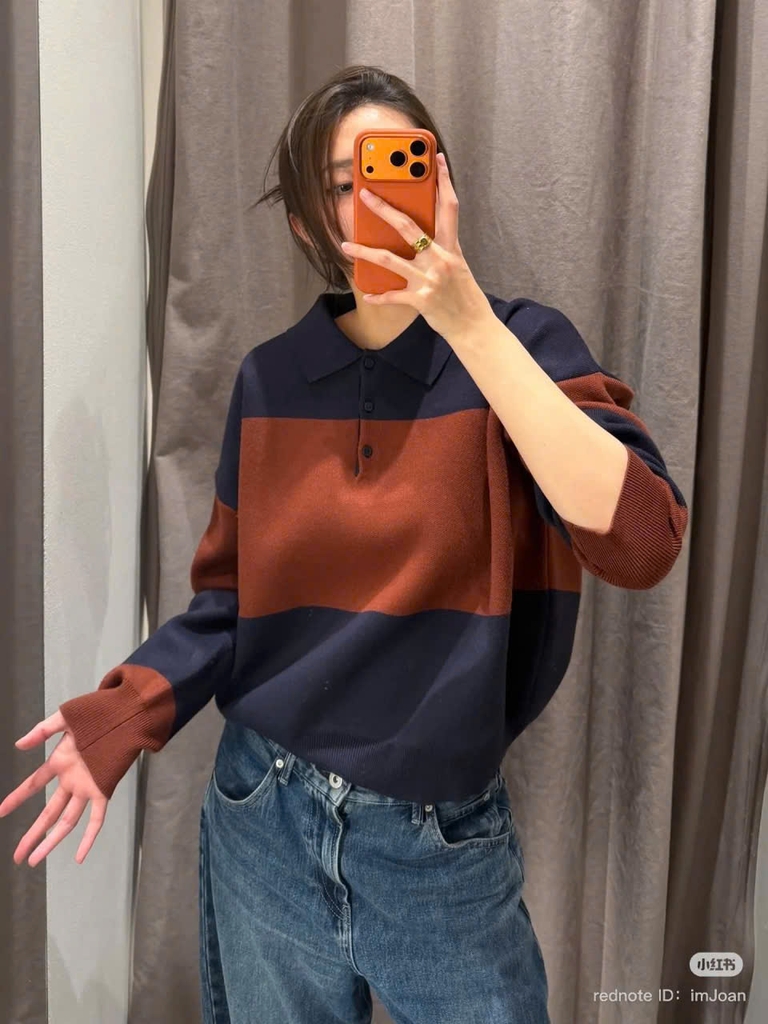 Đánh giá 469-áo len cổ polo kẻ ngang cam đỏ phối than full tem