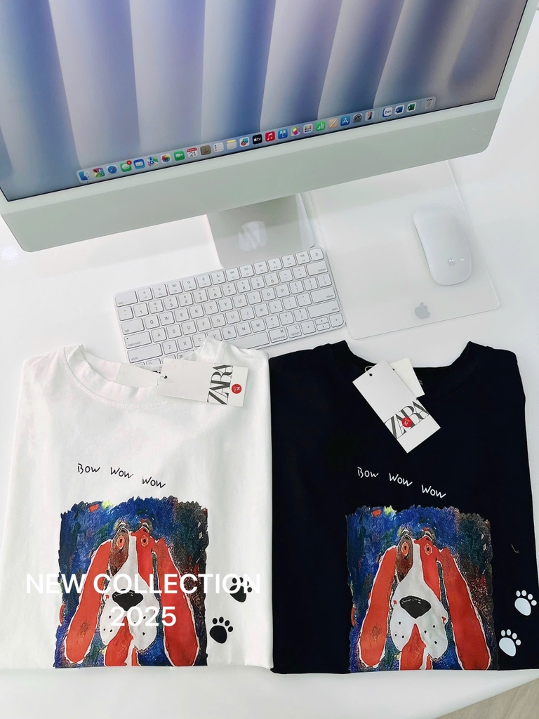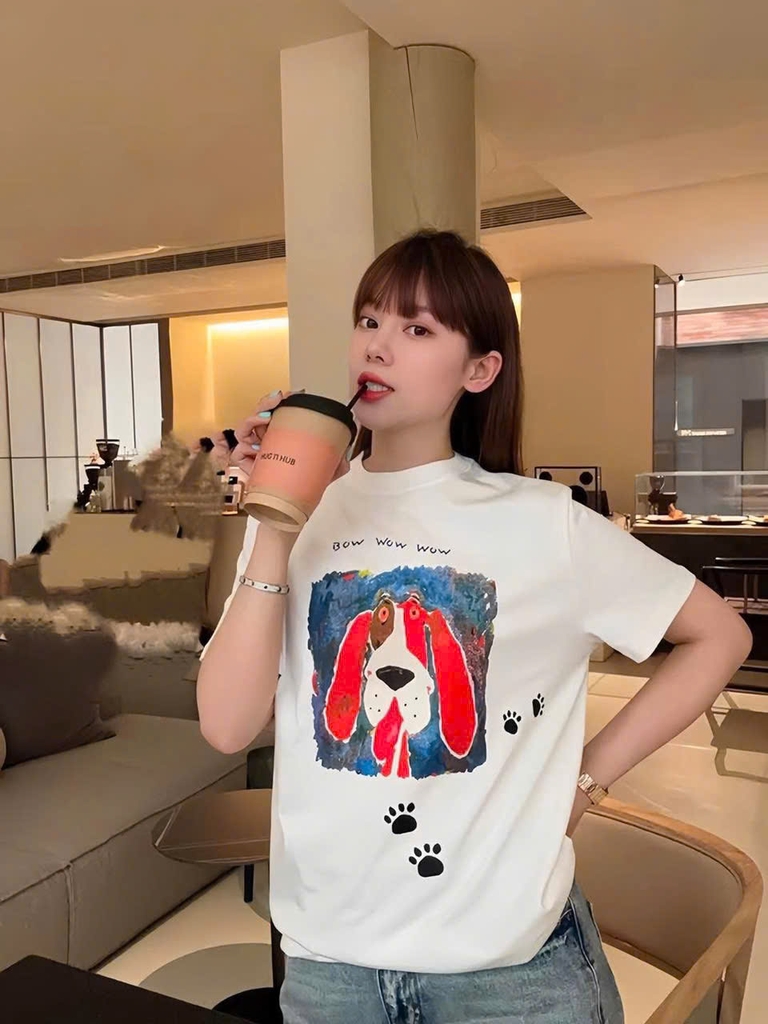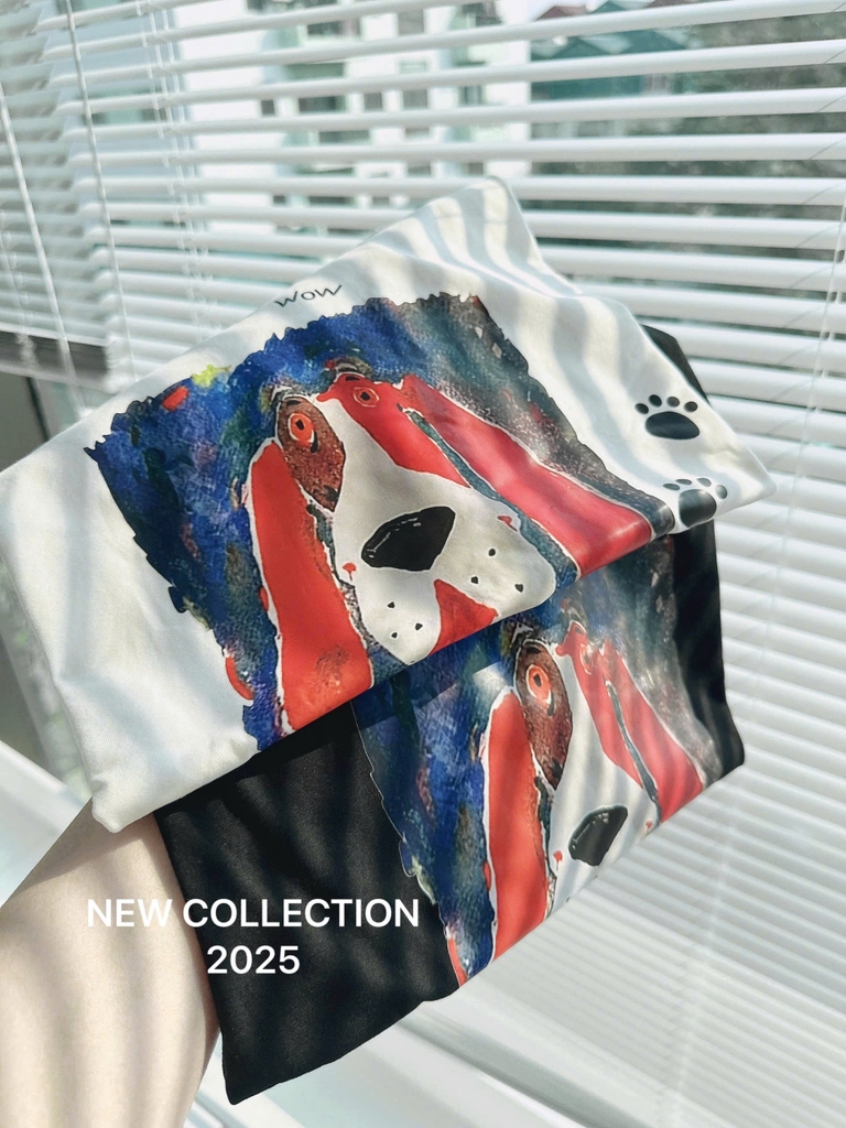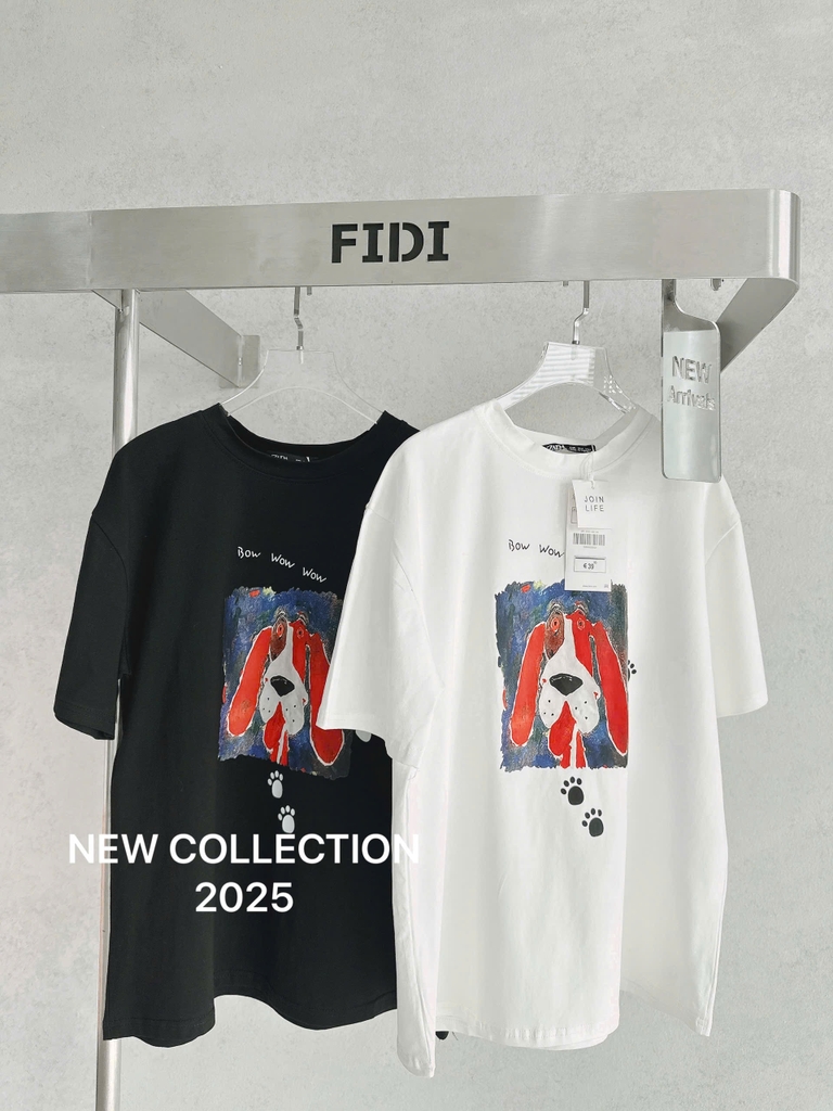 ☘️A180- ÁO PHÔNG ZR CHÓ ĐỎ 2 MÀU ĐEN TRẮNG☘️