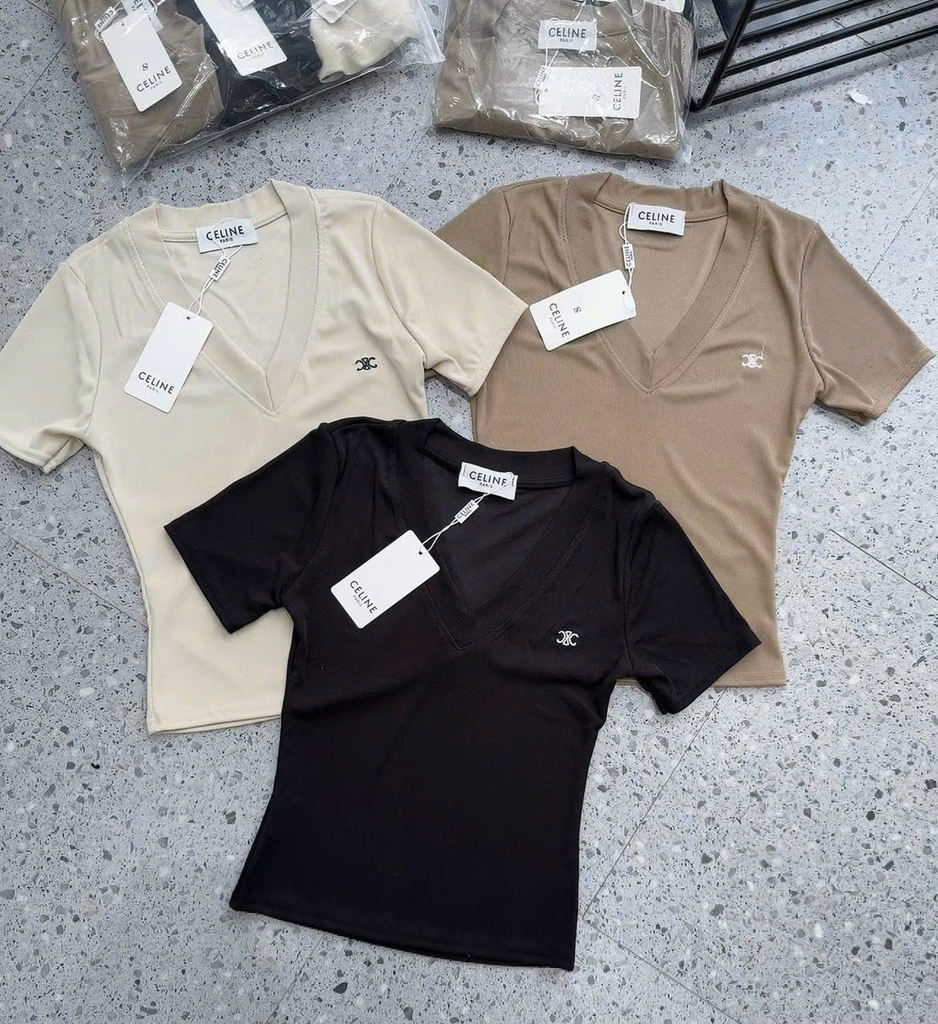 A250- Set 3 áo cổ Tim màu basic kèm tag cha neo