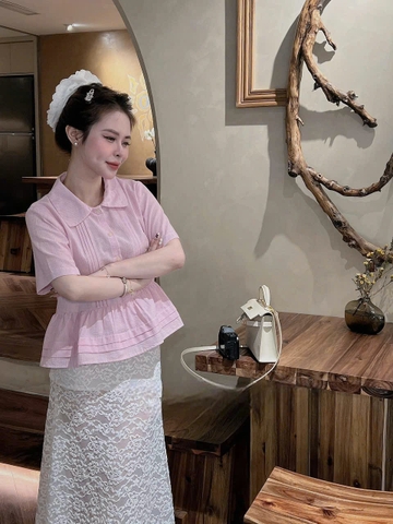 Đánh giá A290- Áo sơ mi peplum kẻ hồng cổ đức chất đũi nhăn đẹp