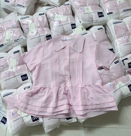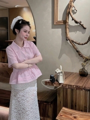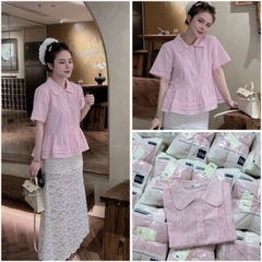 A290- Áo sơ mi peplum kẻ hồng cổ đức chất đũi nhăn đẹp