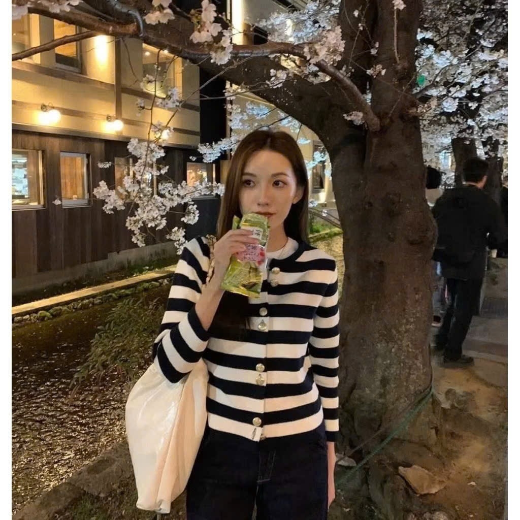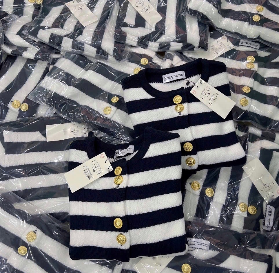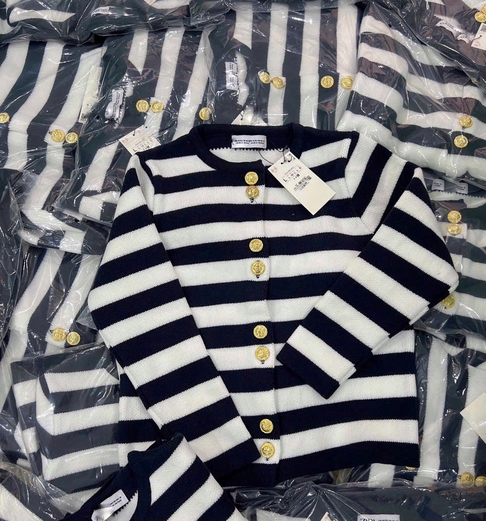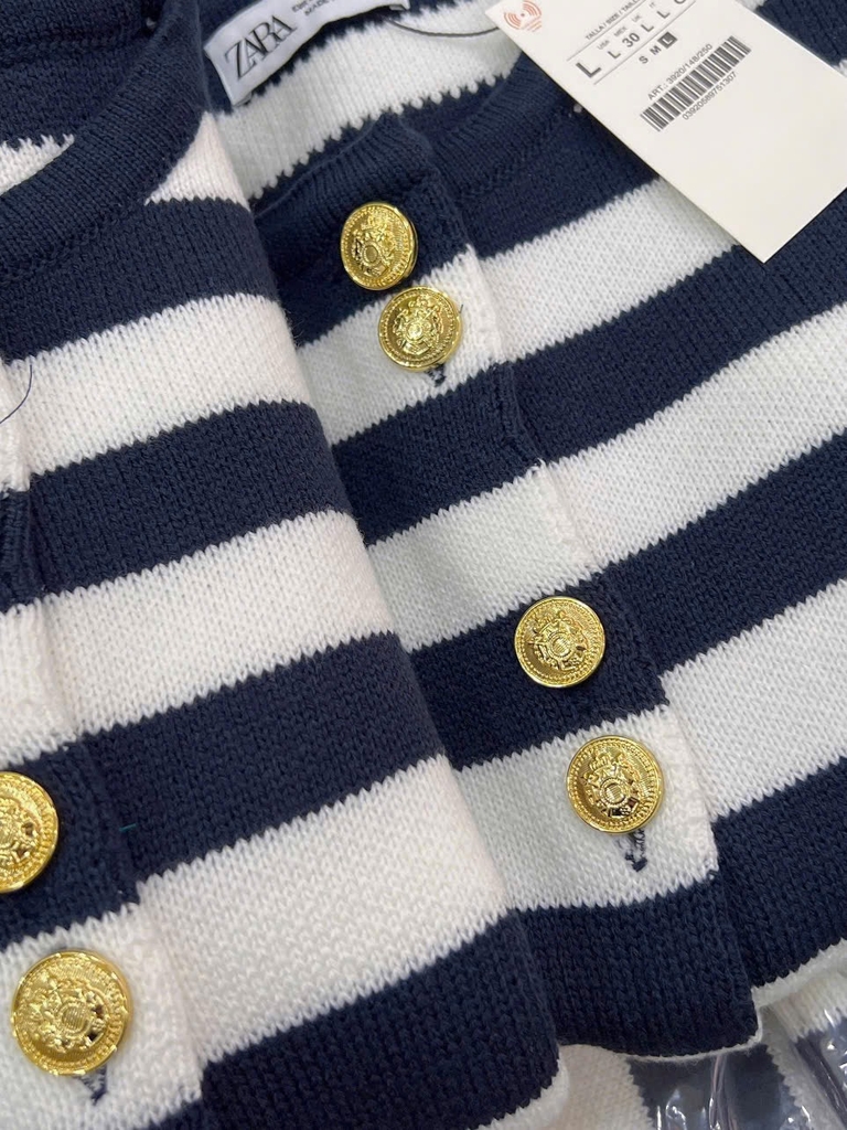 A373-Áo len kẻ cúc đồng full tem