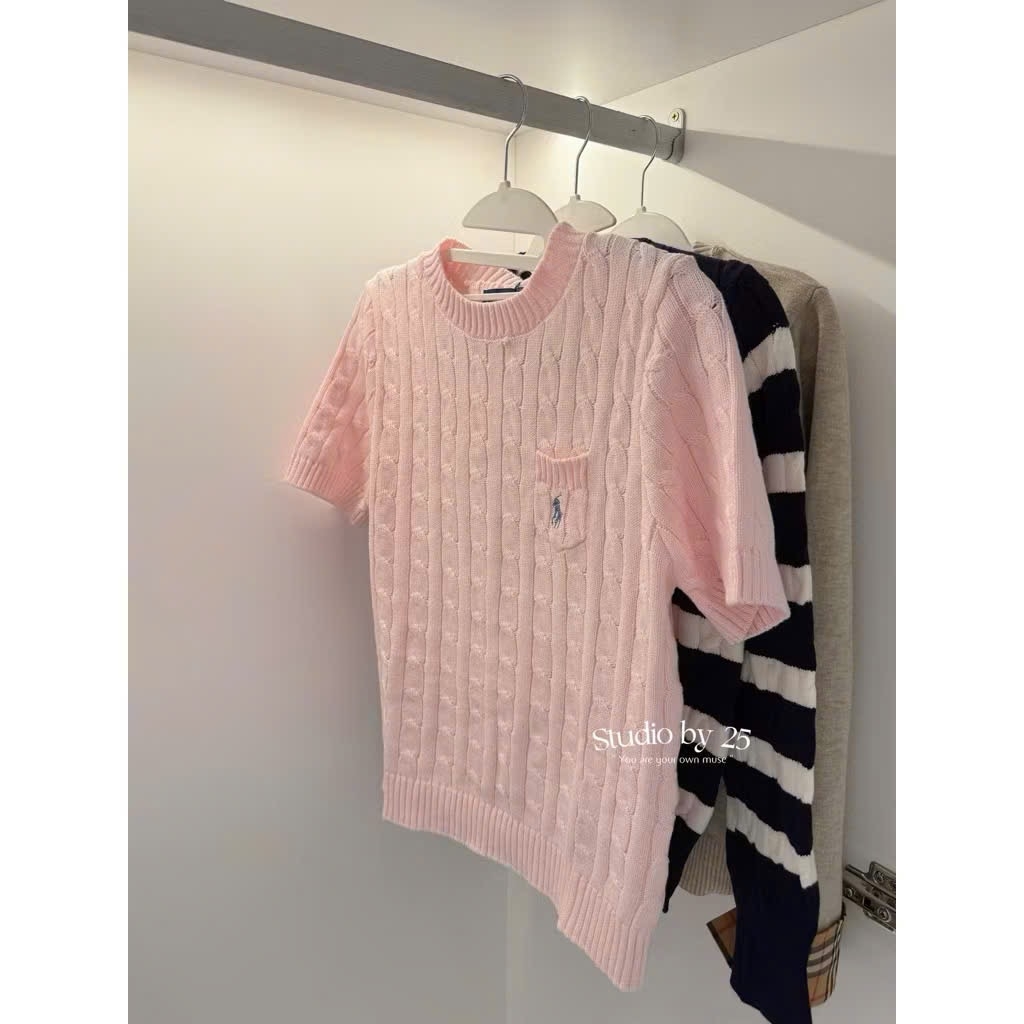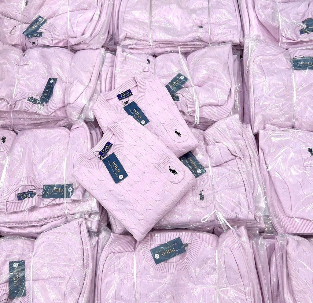 A380-Áo len thừng màu hồng thêu ngực dày dặn full tem hàng nhà máy
