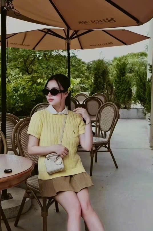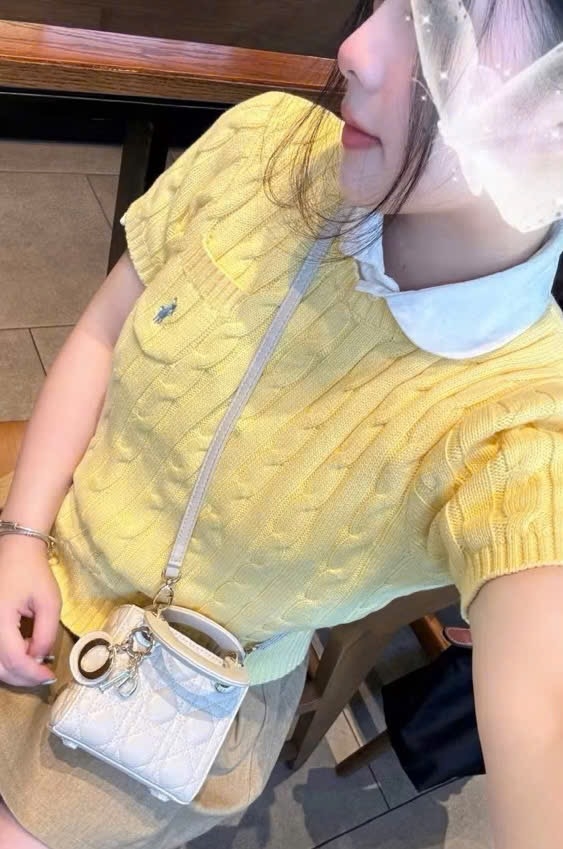 A383- Áo len cộc tay dệt kim vàng tươi