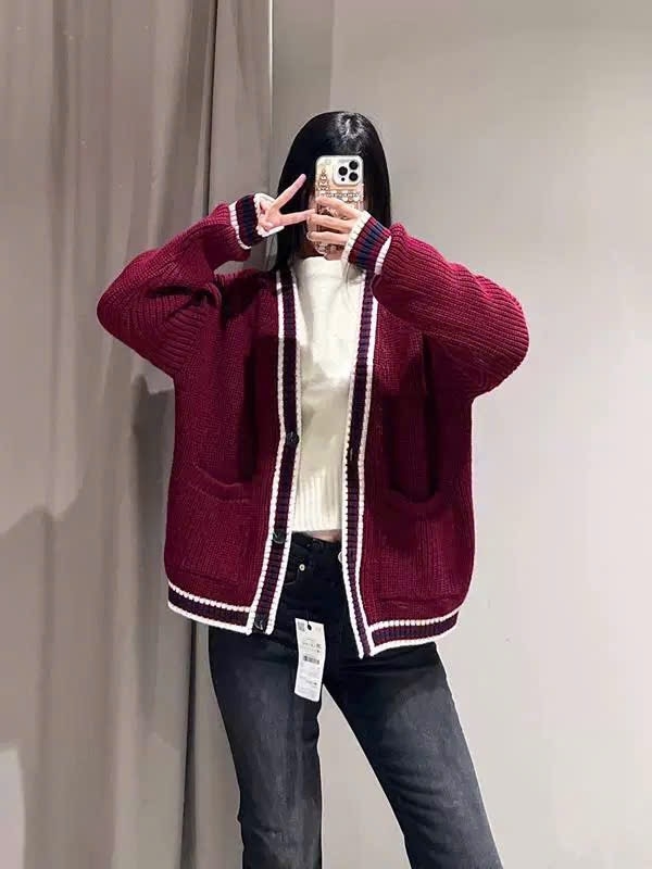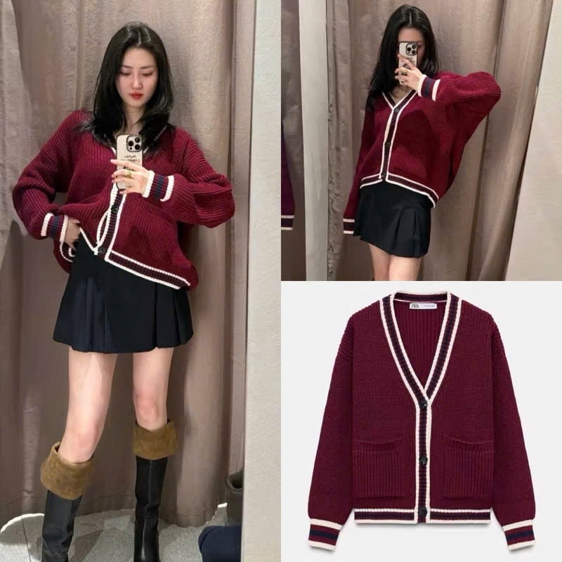 Đánh giá A387- Áo len cadigan đỏ viền đen hàng nhà máy full tem