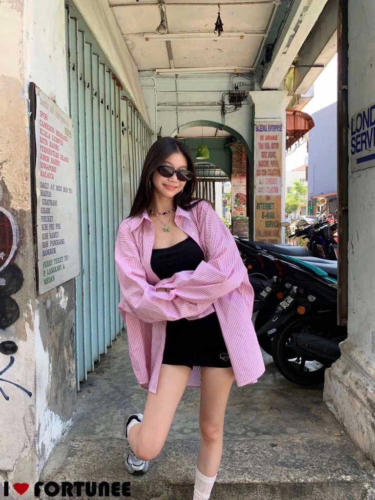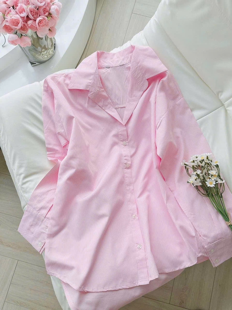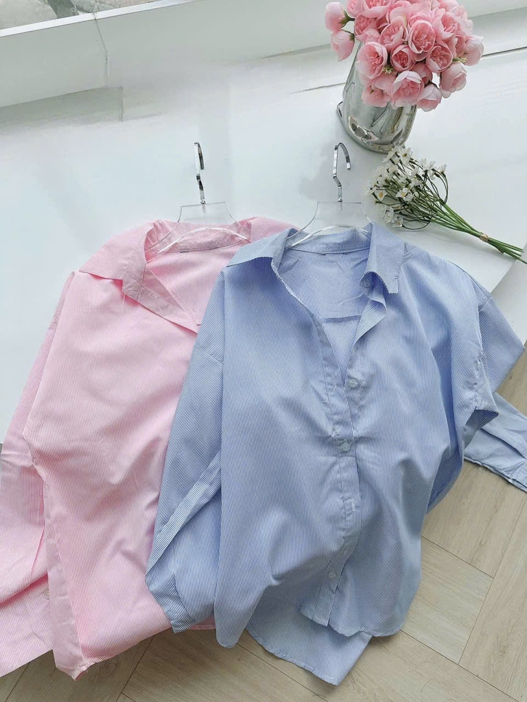 Đánh giá 🍀A400- ÁO SMI KẺ XANH - HỒNG chất thô đũi dáng suông