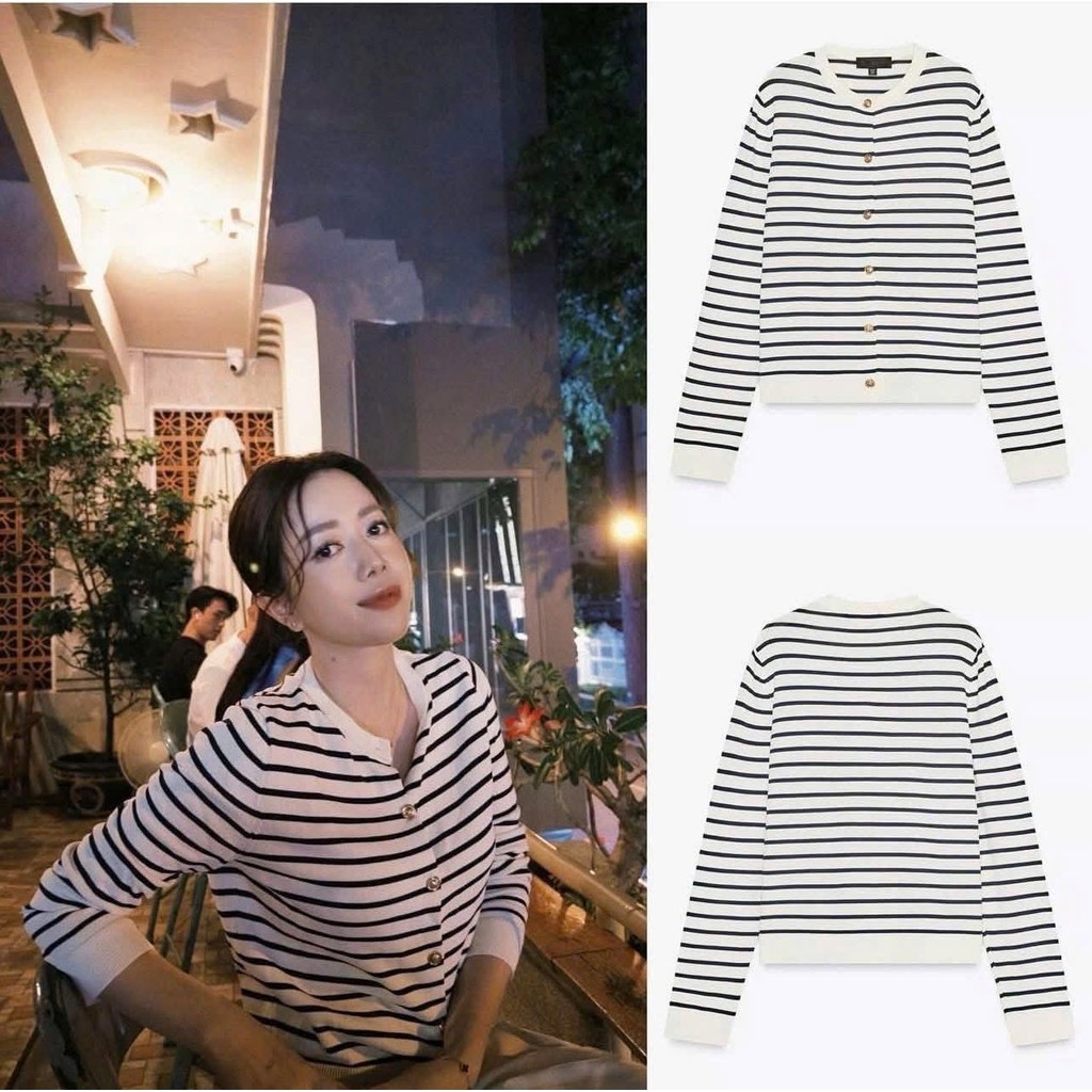 Đánh giá A404- Áo len kẻ ngang đen trắng cúc đồng hàng nhà máy chuẩn Thời trang công sở CAMILLA