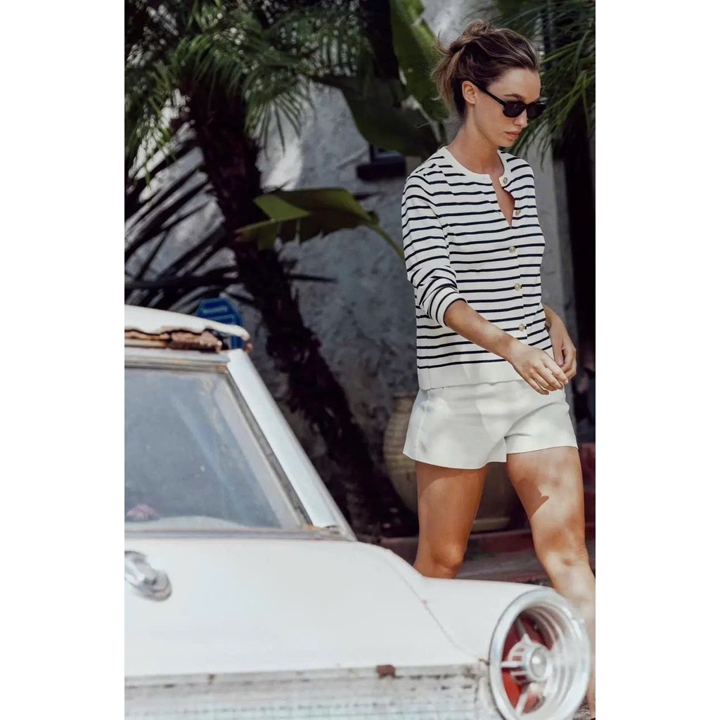 A404- Áo len kẻ ngang đen trắng cúc đồng hàng nhà máy chuẩn Thời trang công sở CAMILLA