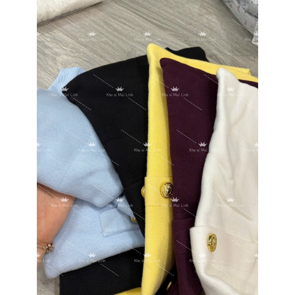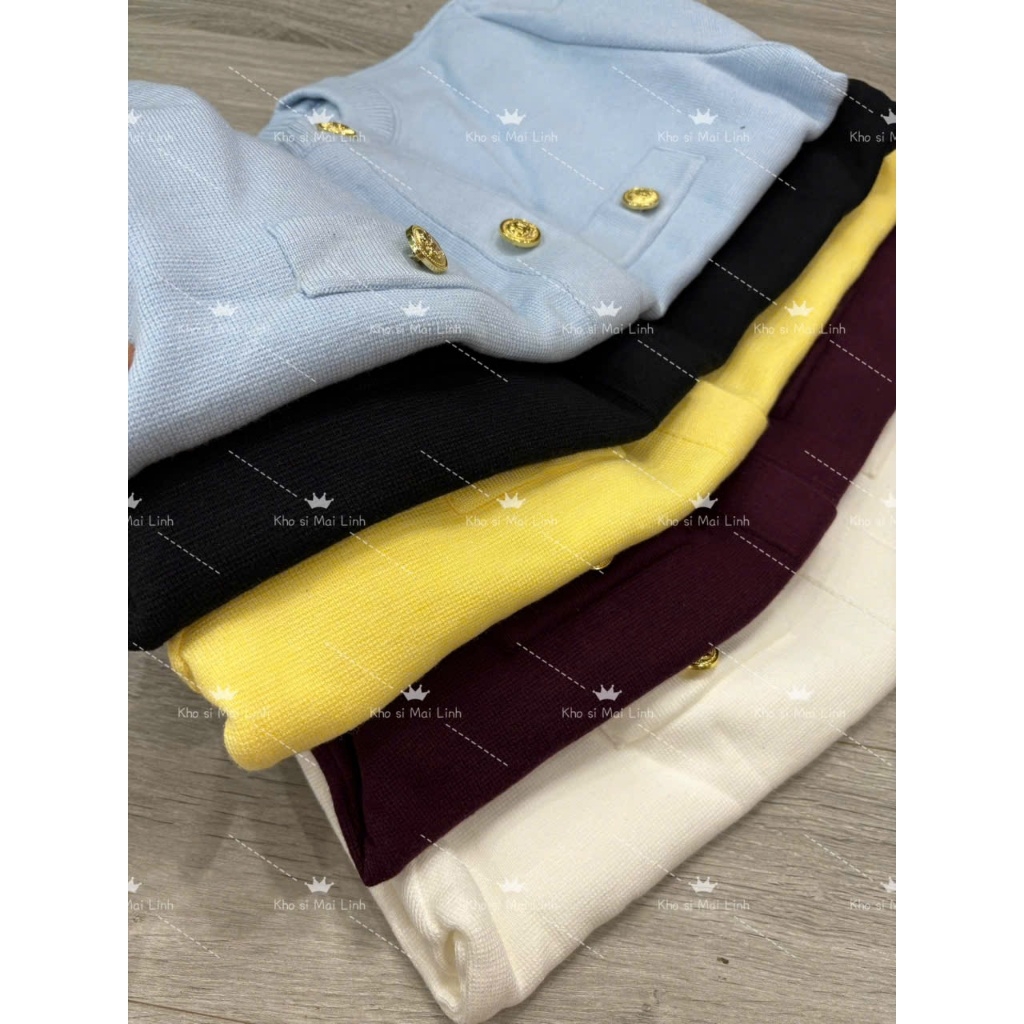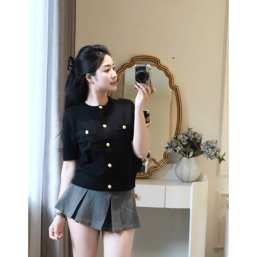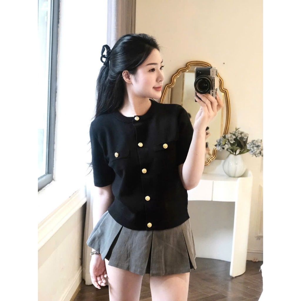 A409-Áo len dệt kim cộc tay đen cúc đồng