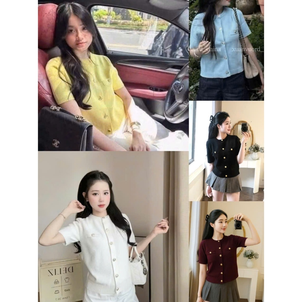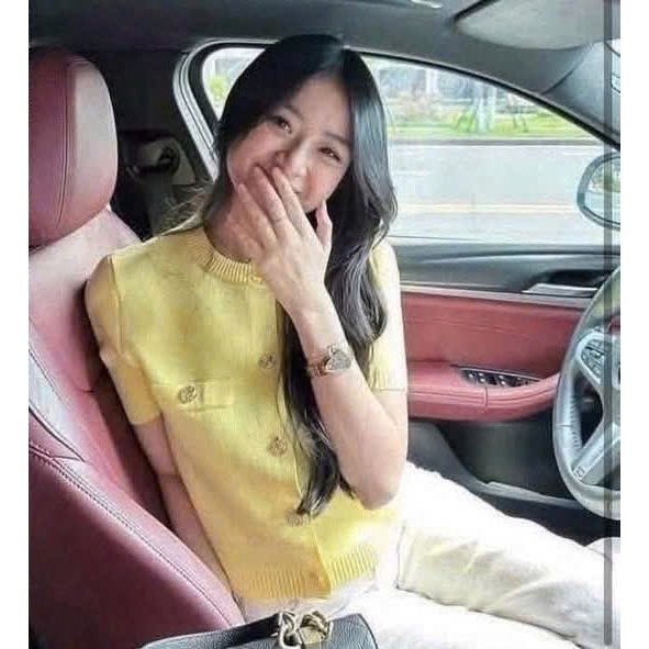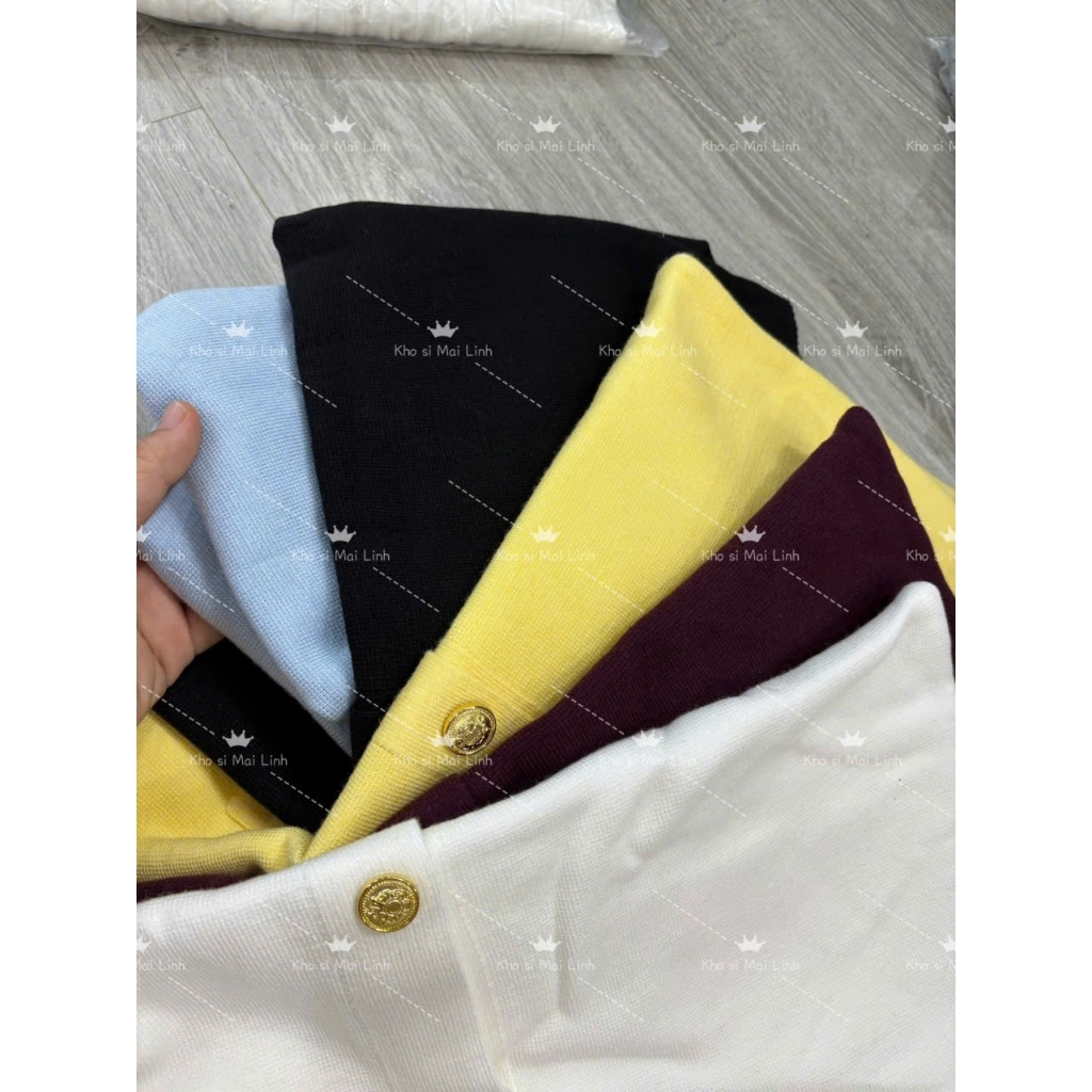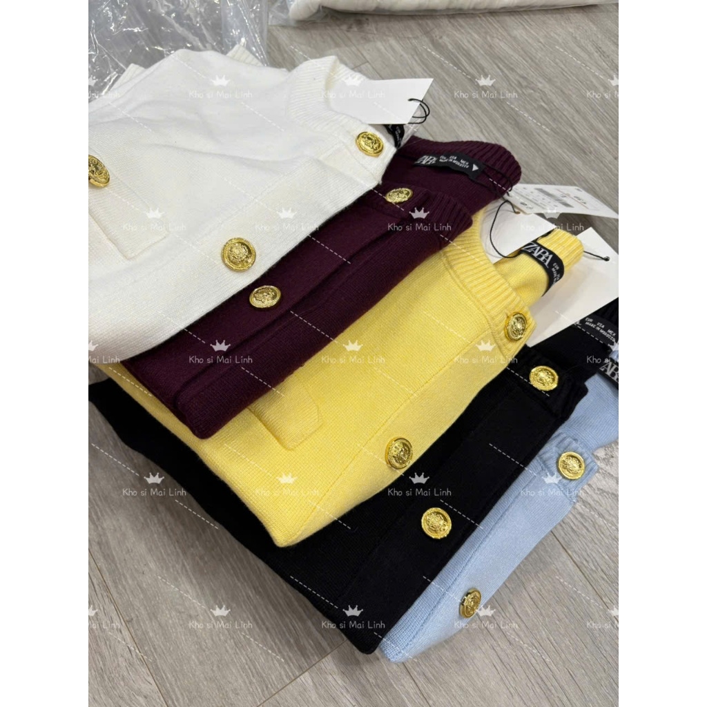 A409-Áo len dệt kim cộc tay đen cúc đồng