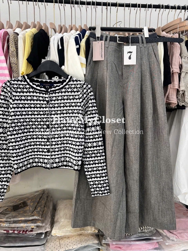 A411- Áo len CDG quảng châu hoạ tiết đen trắng