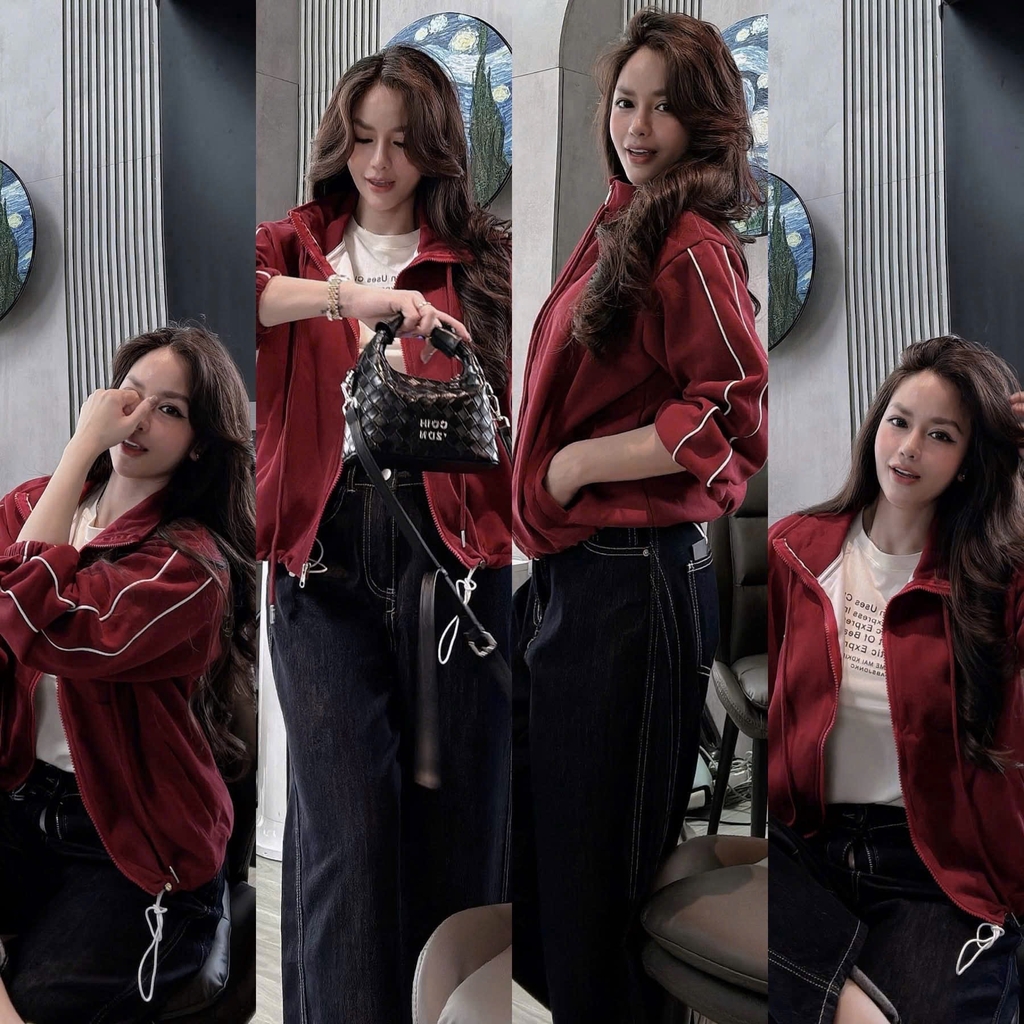 A413-Áo khoác nỉ haida đỏ kéo khoá