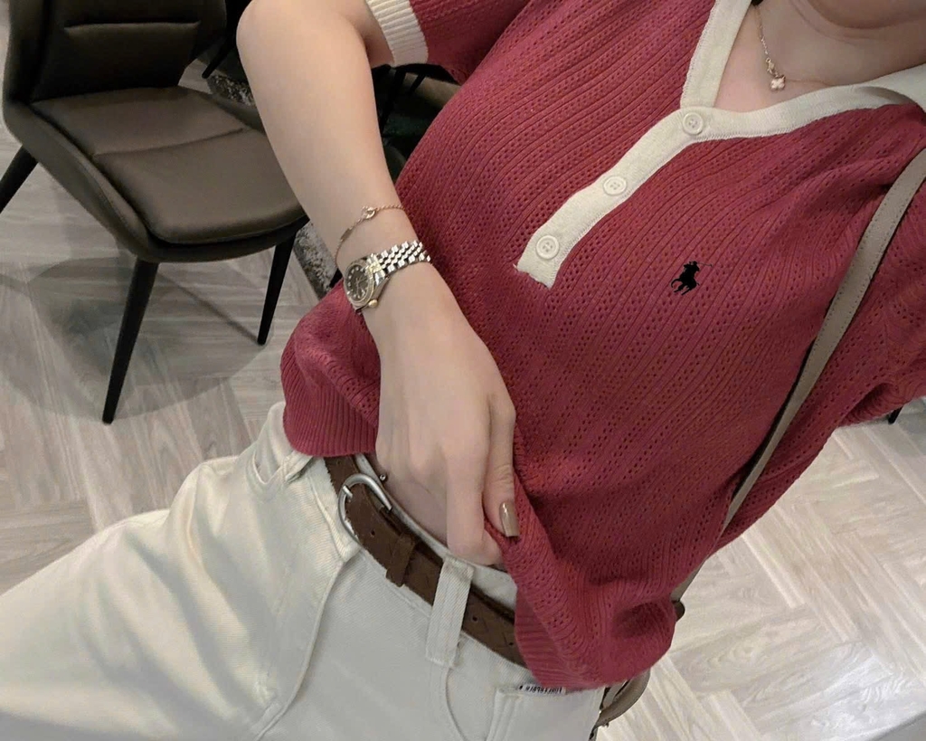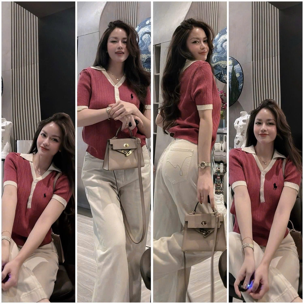A489-Áo len cộc tay màu đỏ Hot Hit mẫu mới 2026 hàng nhà máy đủ tem