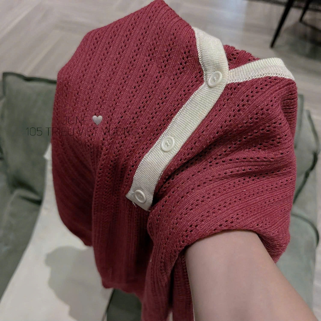 A488-Áo len cadigan cộc tay màu hồng Hot Hit mẫu mới 2026 hàng nhà máy đủ tem