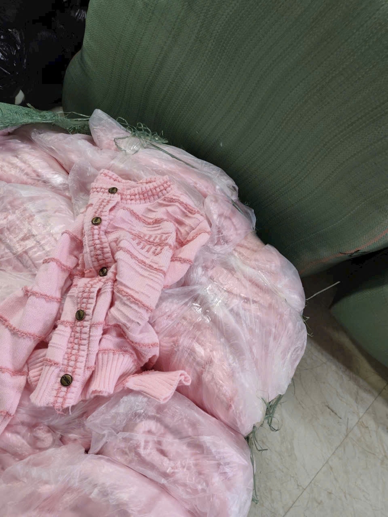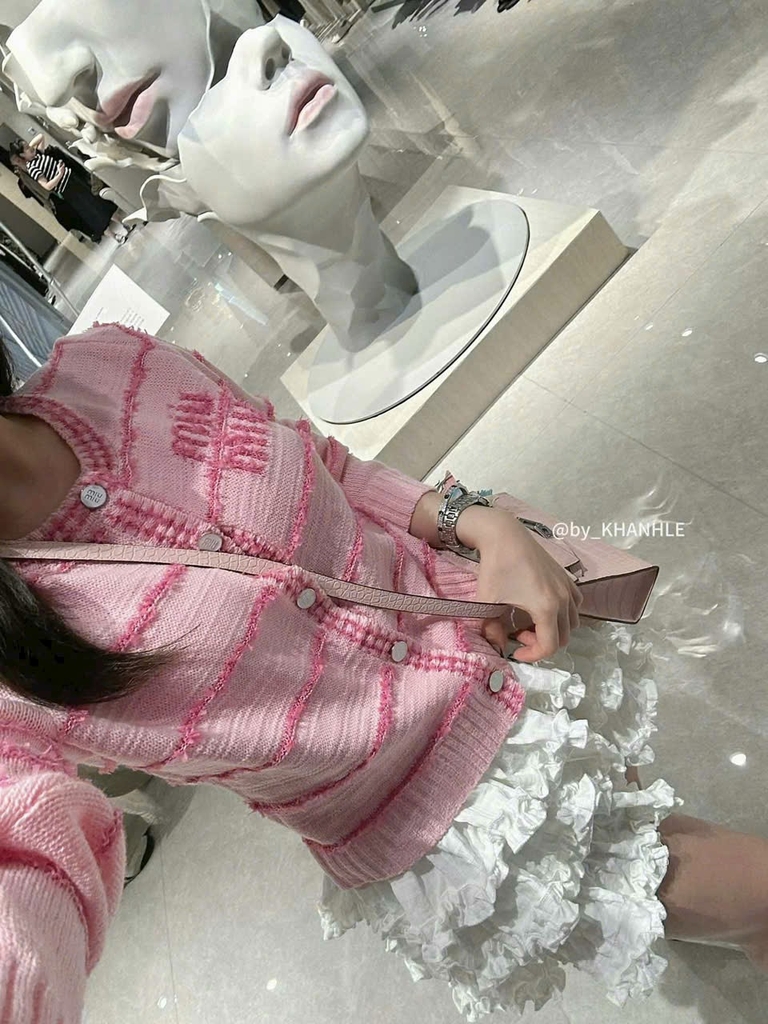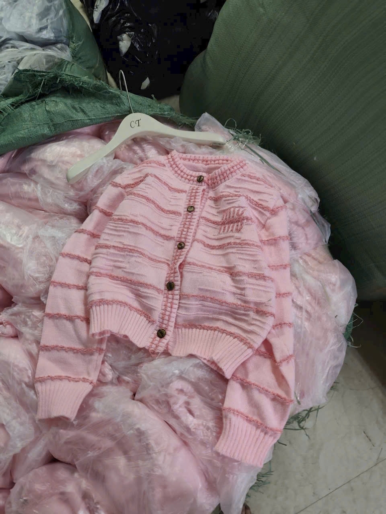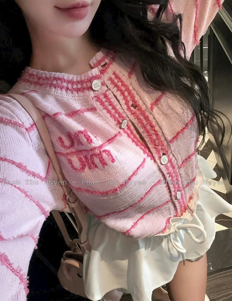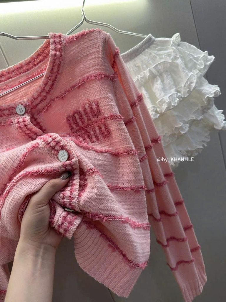 A426- Áo len dệt kim dài tay kẻ trắng hồng