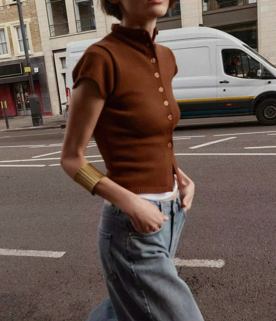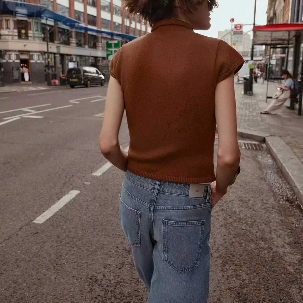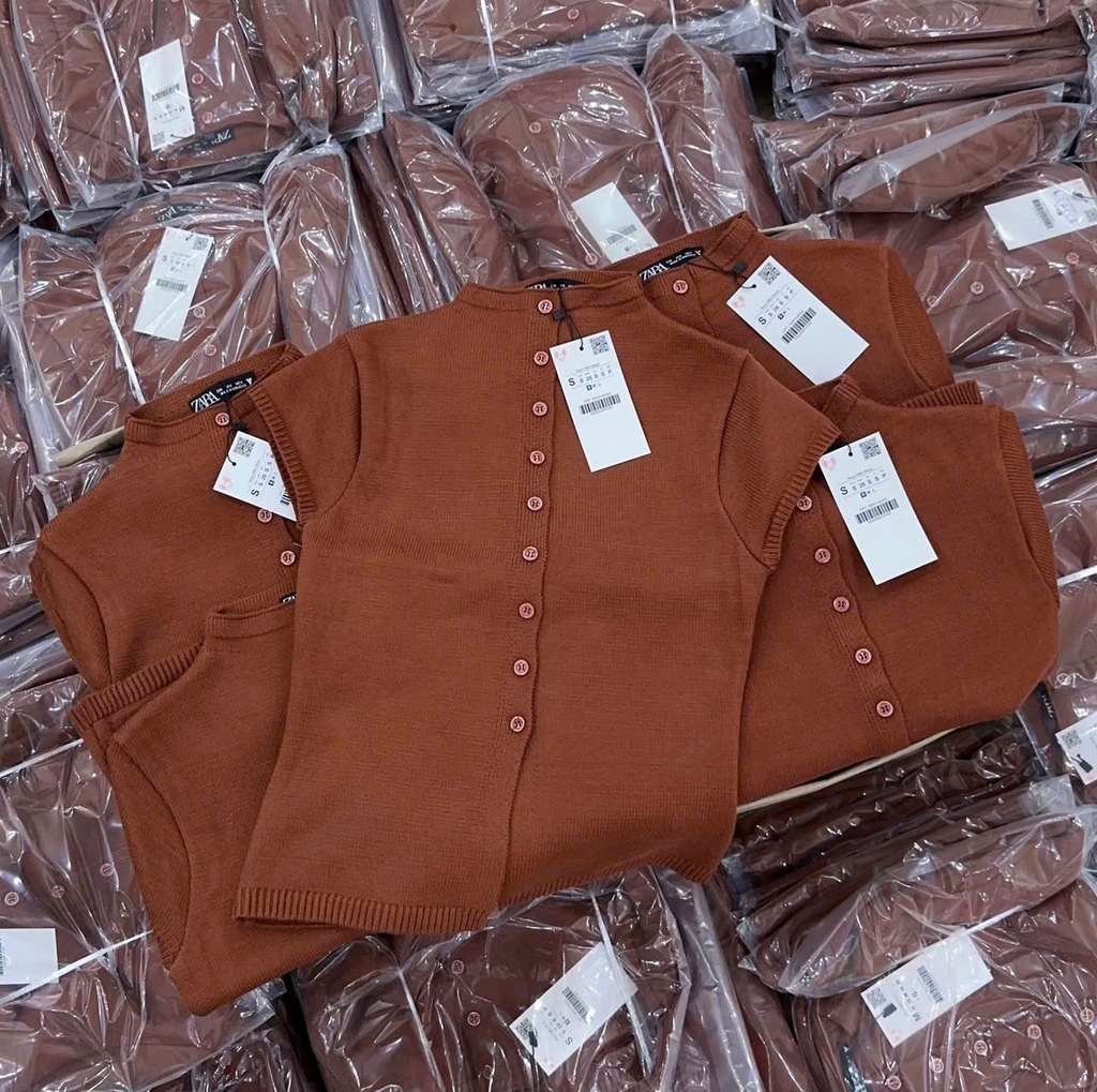 A428- Áo len cộc màu cam đất full tem nhà máy