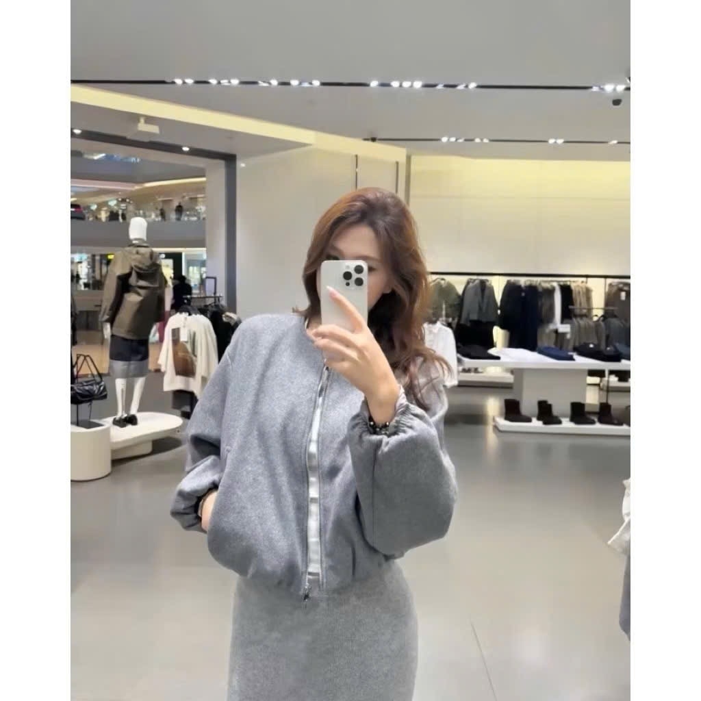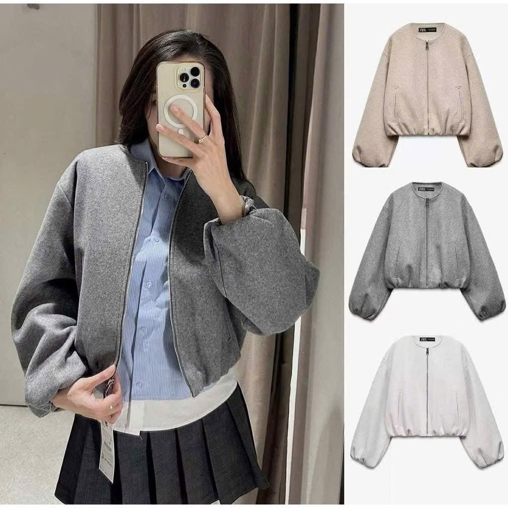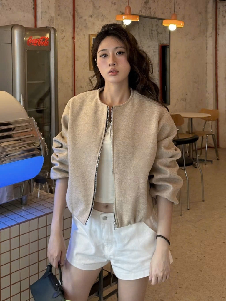 A430- Áo khoác bomber dạ mềm bo gấu 2 màu xám be