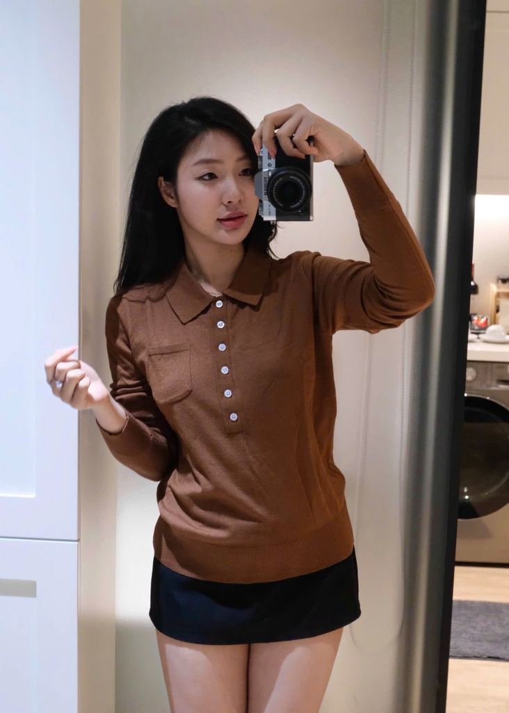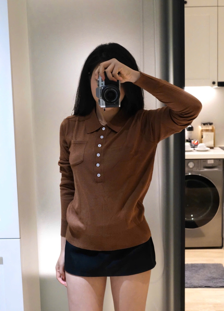 Đánh giá A432- Áo len dài tay cổ tròn túi ngực màu nâu tây