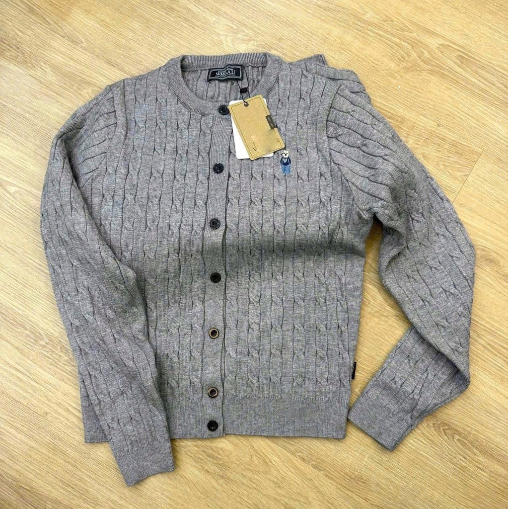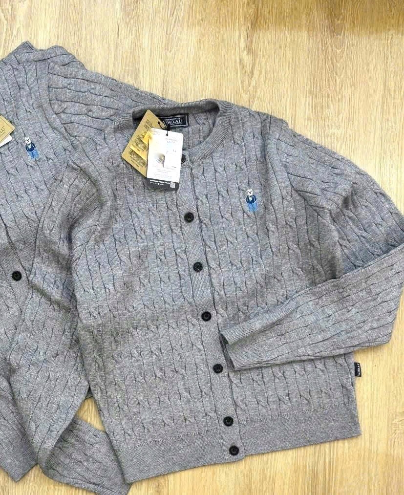 A448- Áo len cadigan vặn thừng màu xám cúc đen thêu gấu hàng nhà máy đủ tem mác