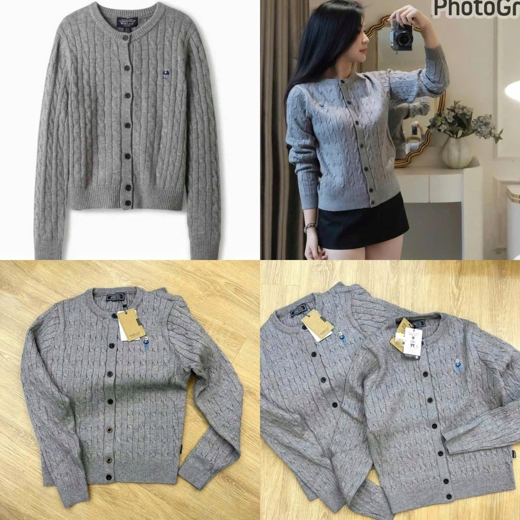 Đánh giá A448- Áo len cadigan vặn thừng màu xám cúc đen thêu gấu hàng nhà máy đủ tem mác