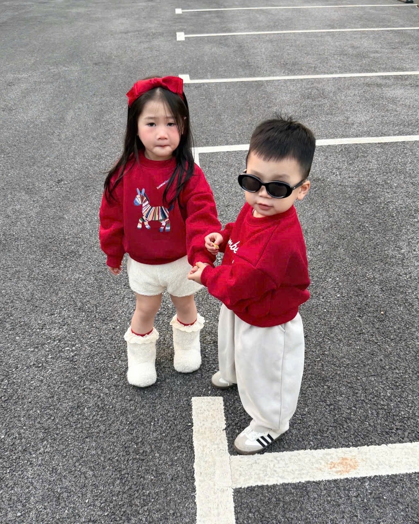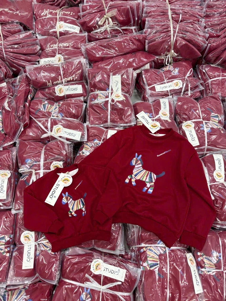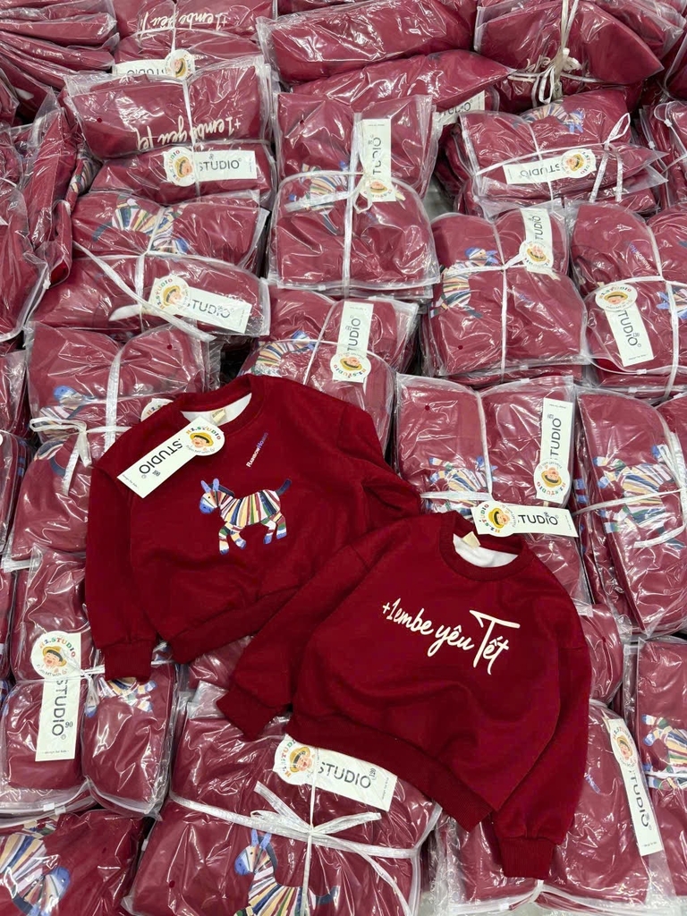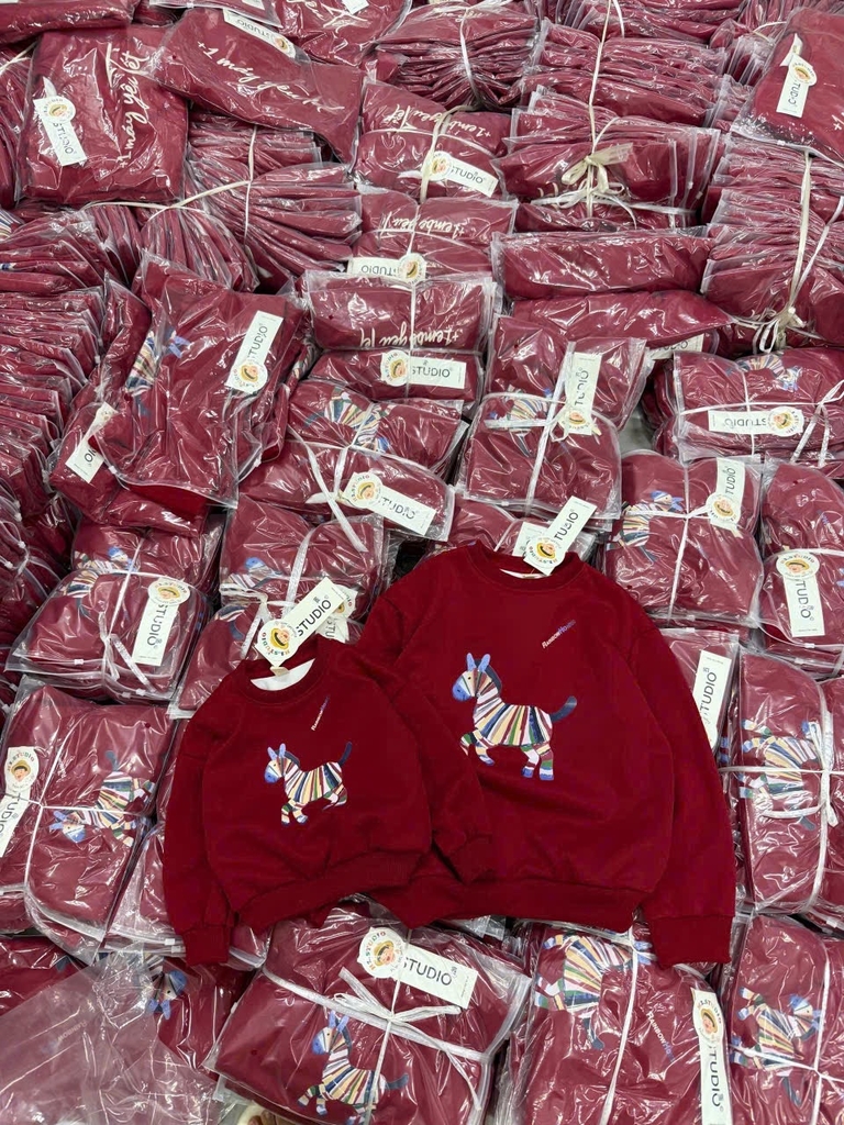 A454-Áo nỉ đỏ gia đình Tết con ngựa