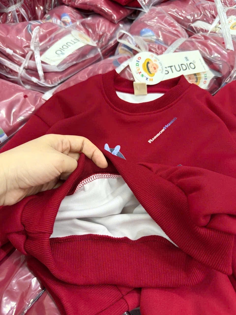 set856- Set chữ nỉ hai da phối quần đỏ viền