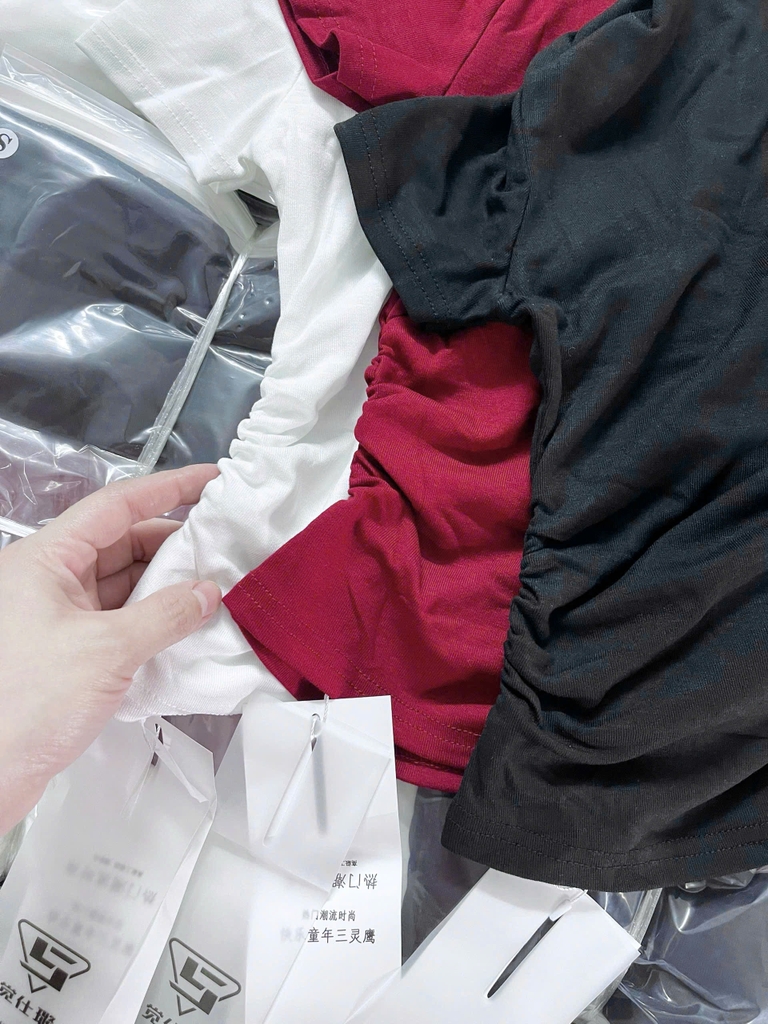 Đánh giá A477-Combo 3 áo thun nhún eo đỏ đen trắng vải díp mềm