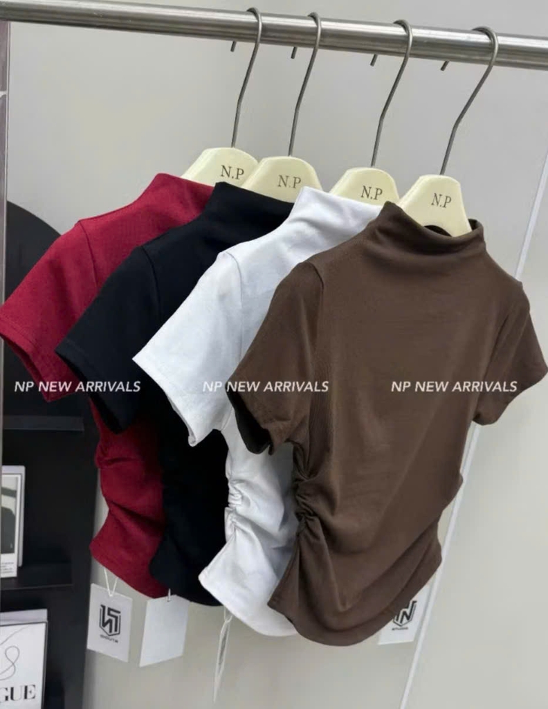 A477-Combo 3 áo thun nhún eo đỏ đen trắng vải díp mềm