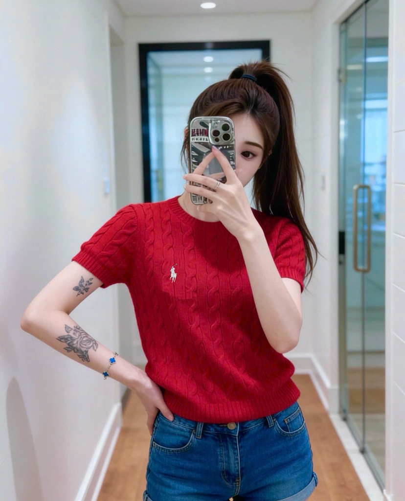 A489-Áo len cộc tay màu đỏ Hot Hit mẫu mới 2026 hàng nhà máy đủ tem