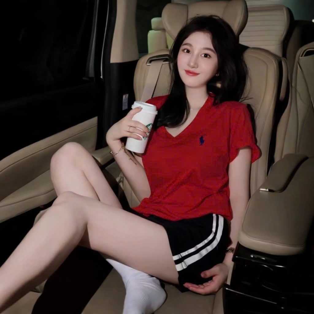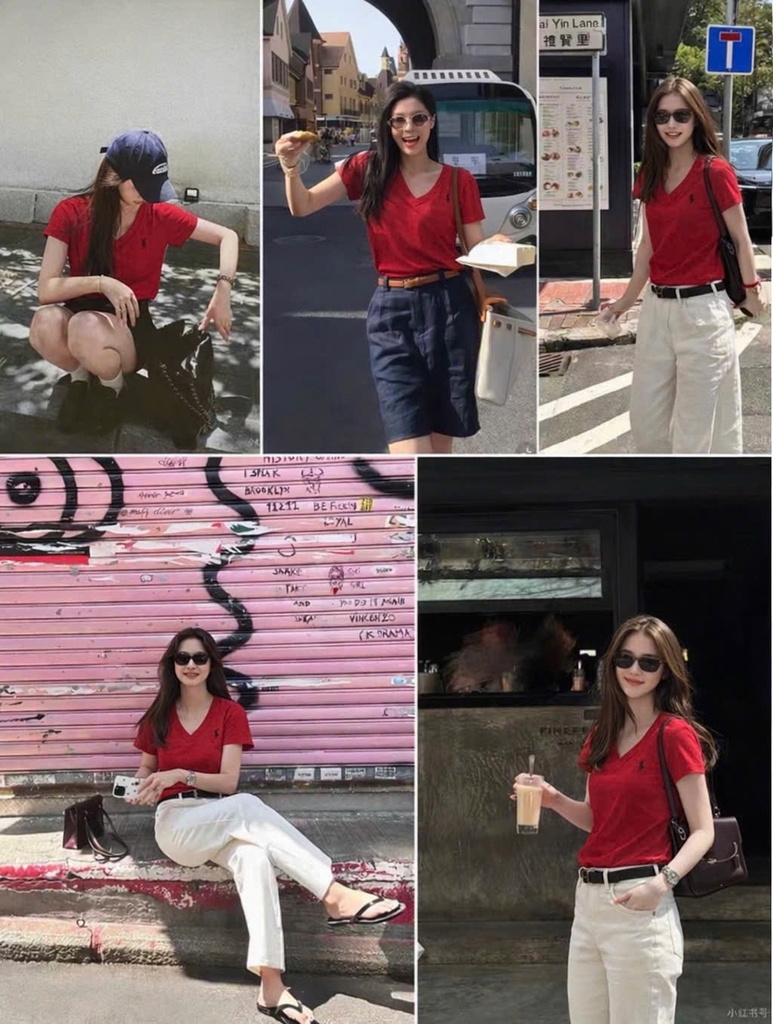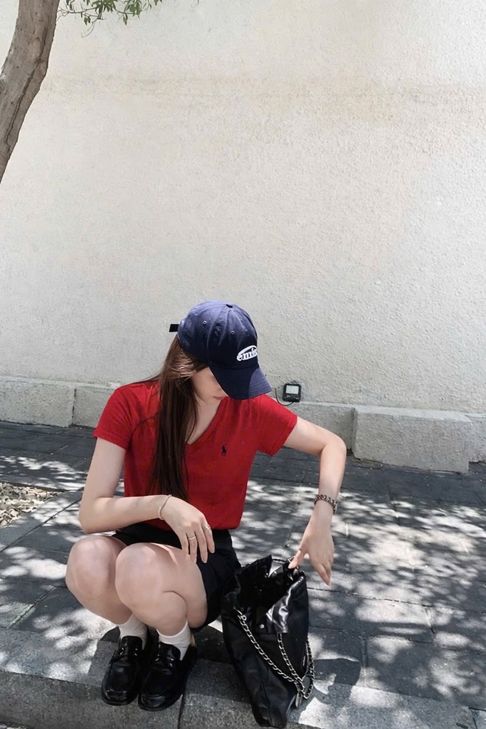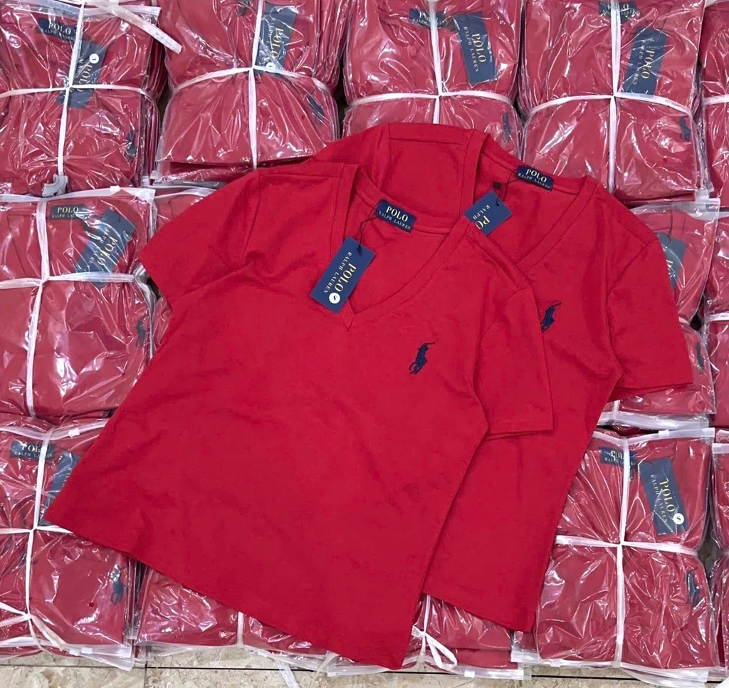 A513-Áo thun đỏ cộc tay cổ V thêu ngựa