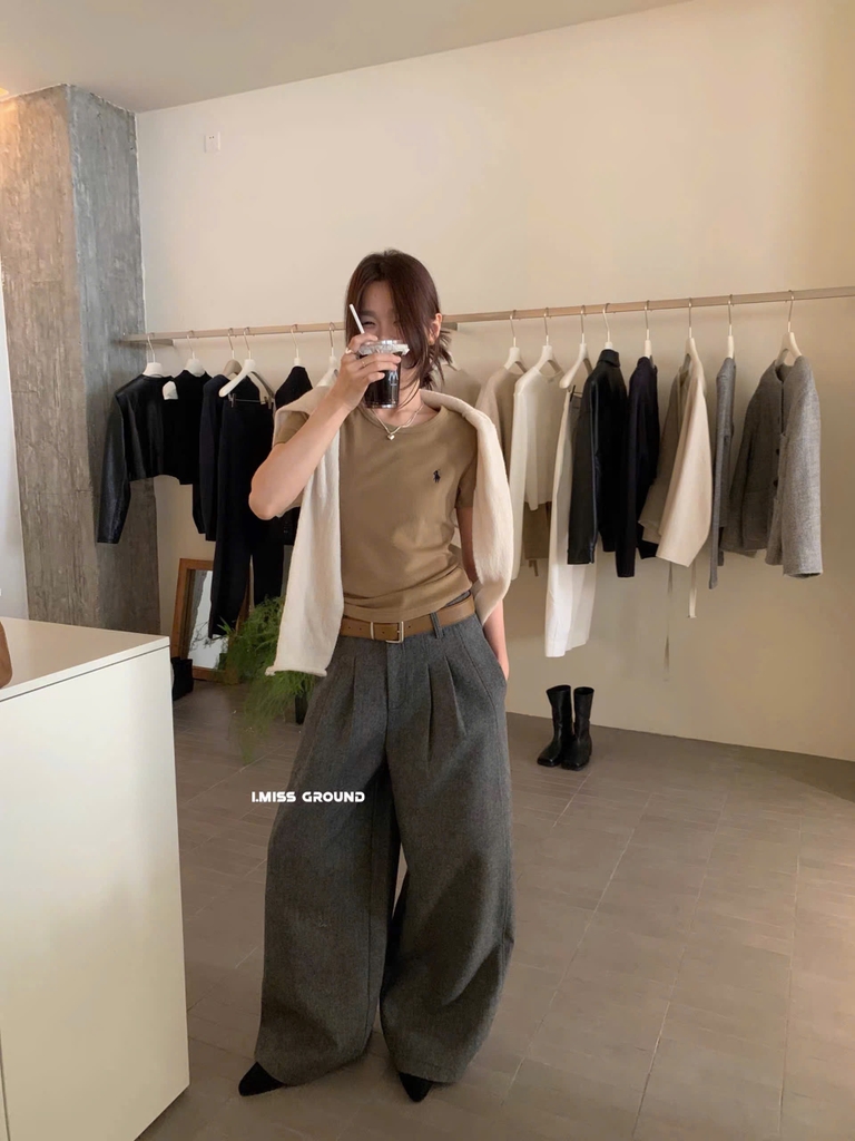 A515-Áo len cộc tay dệt kim màu nâu thêu ngựa mẫu mới 2026