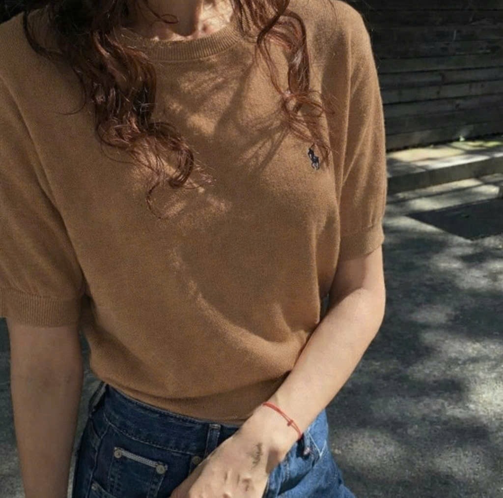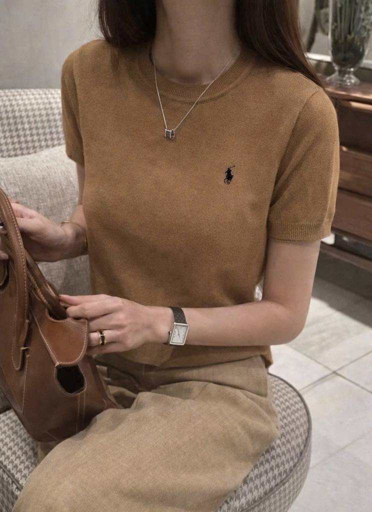 Đánh giá A515-Áo len cộc tay dệt kim màu nâu thêu ngựa mẫu mới 2026