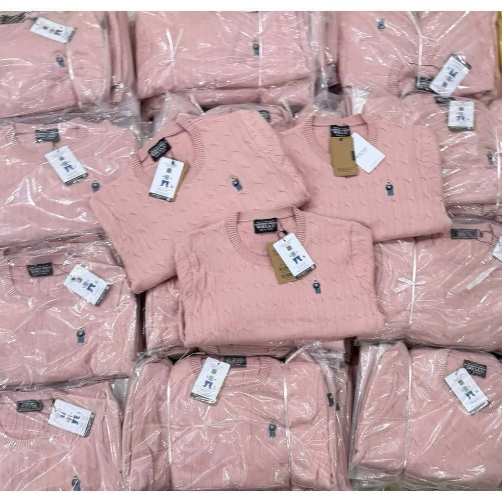 A554-Áo len thừng màu hồng cổ tròn hàng nhà máy đủ tem mác