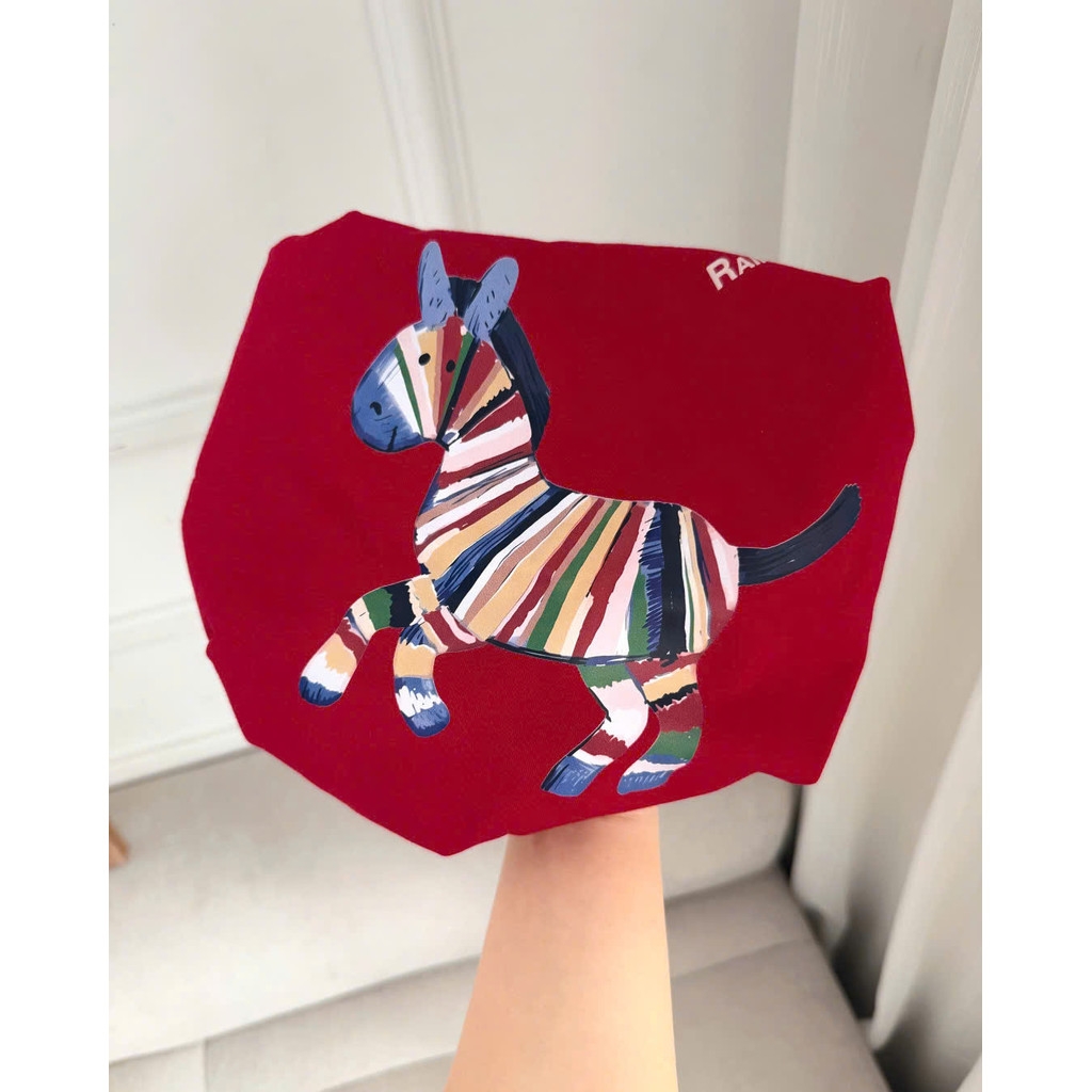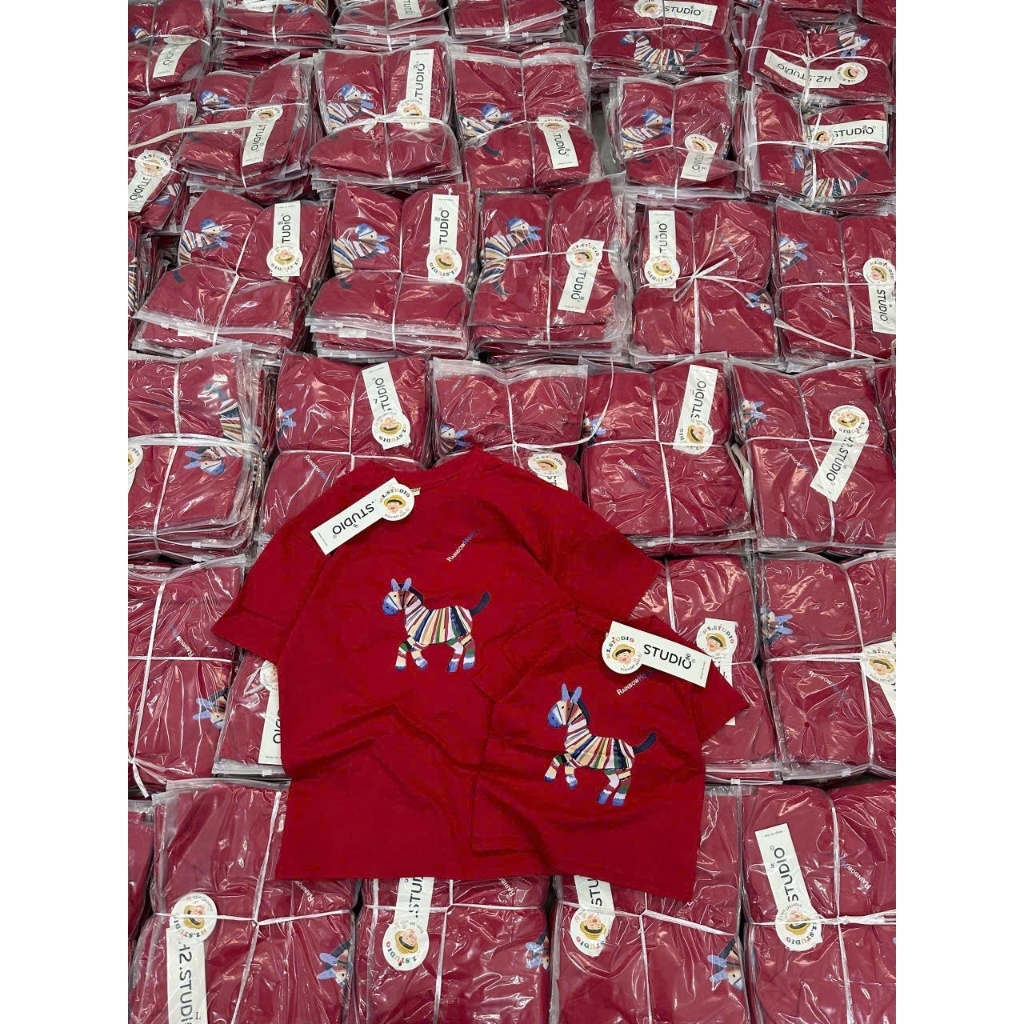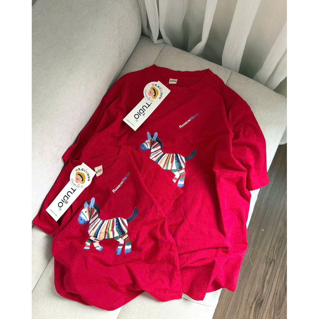 A557-Áo thun gia đình màu đỏ cộc tay Tết con ngựa