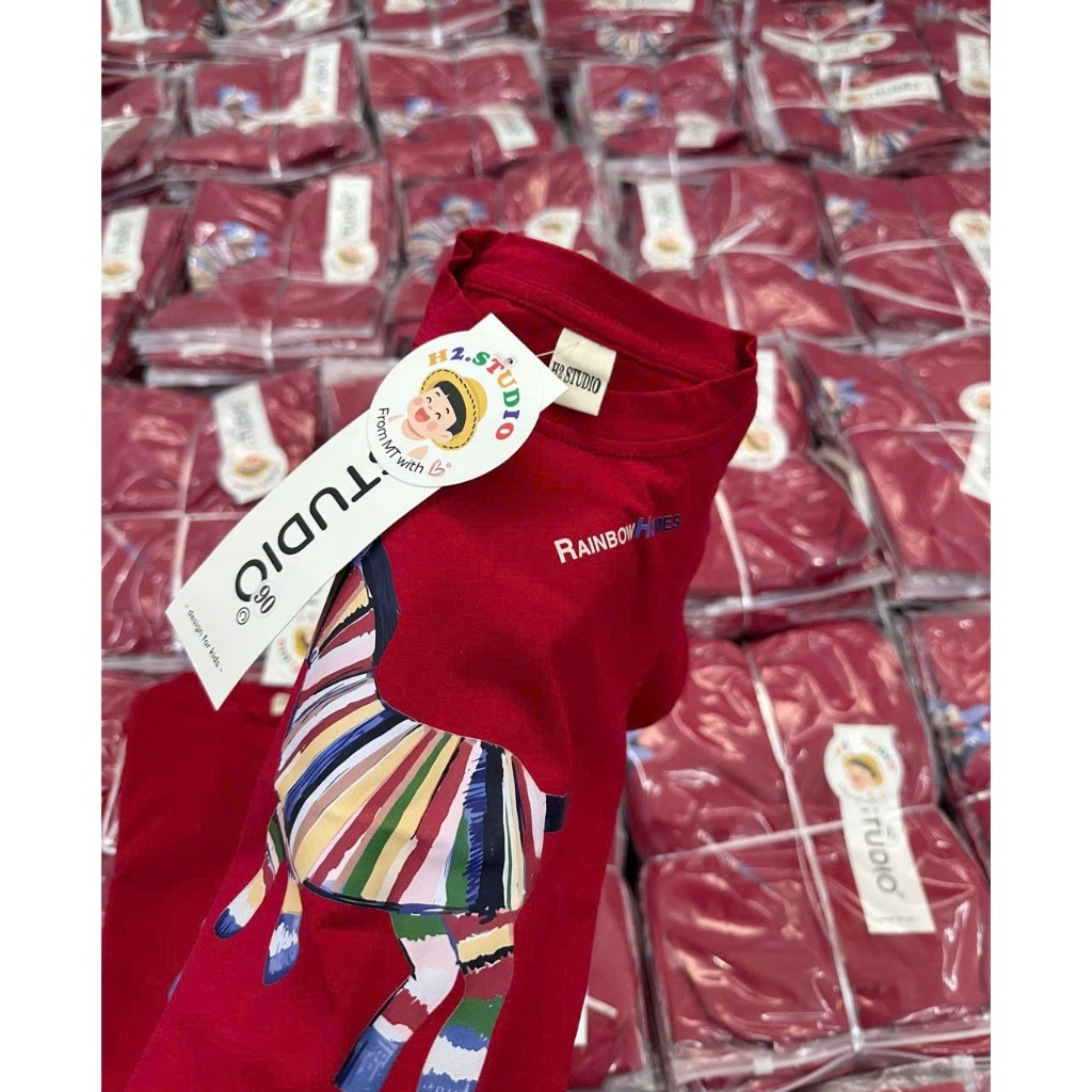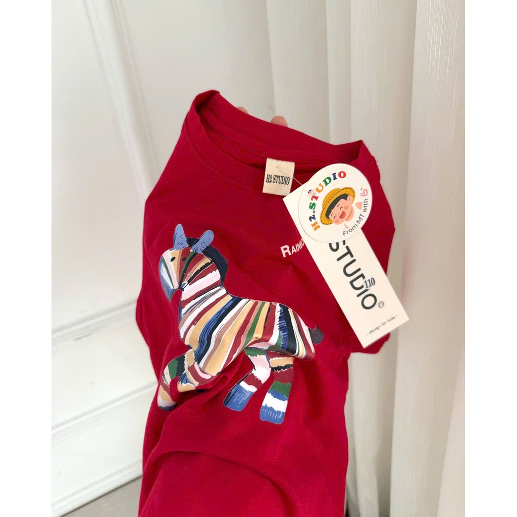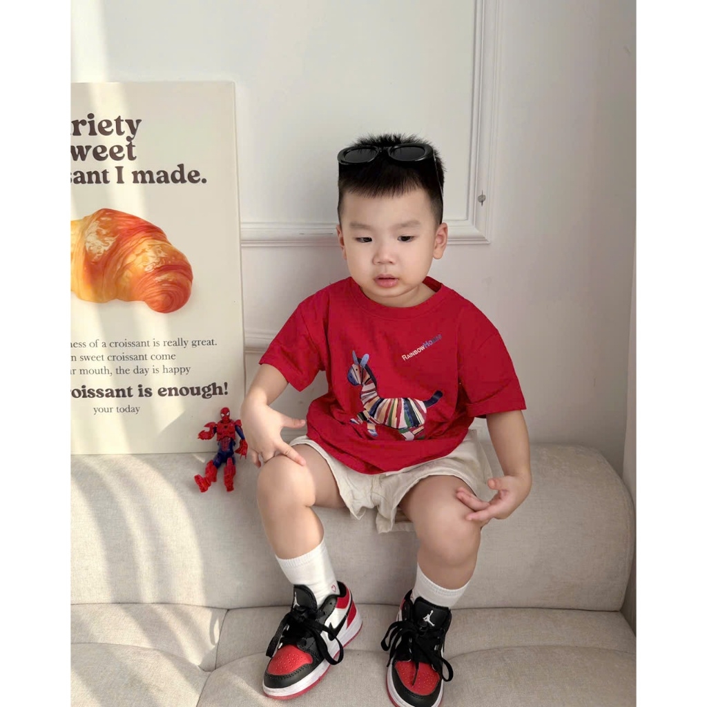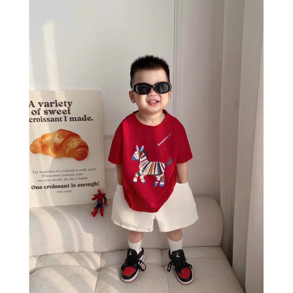 A557-Áo thun gia đình màu đỏ cộc tay Tết con ngựa