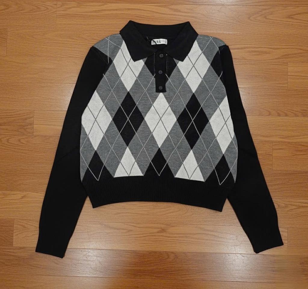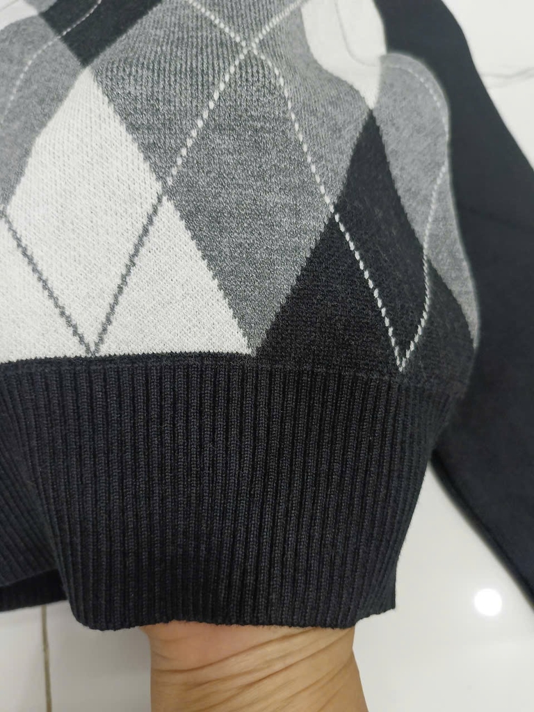 Đánh giá A558- Áo len cúc trước kẻ chám màu đen full tem nhà máy