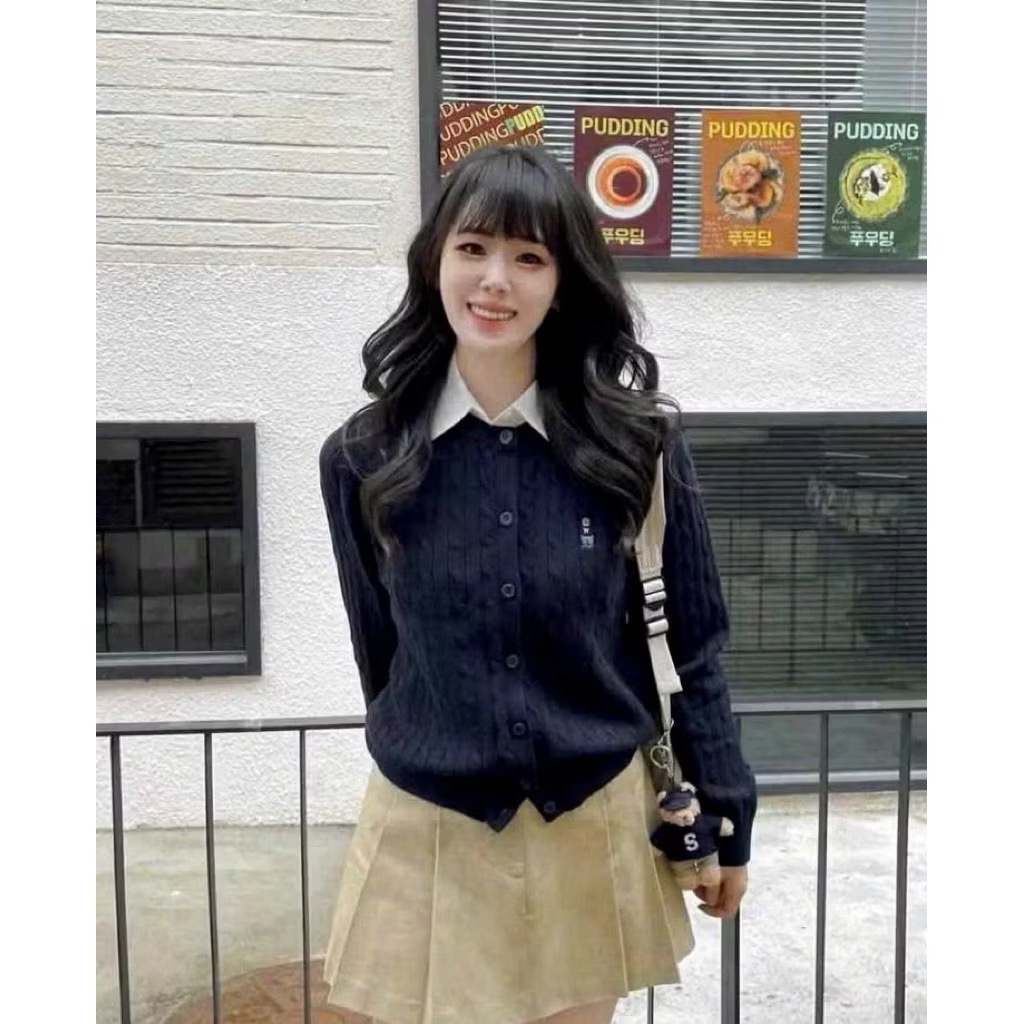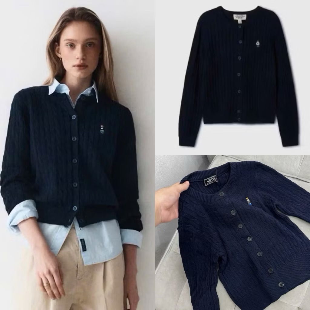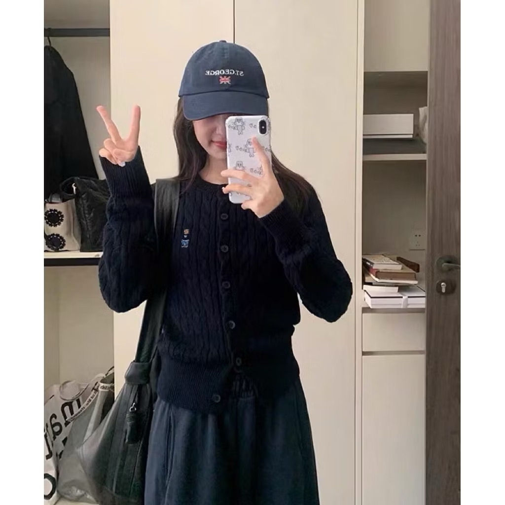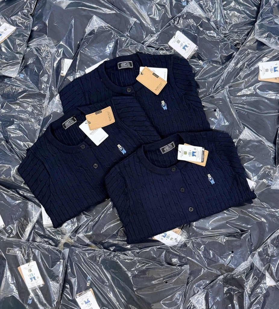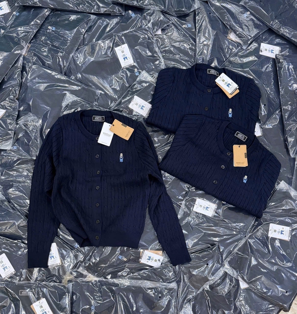 A559-Áo len cadigan màu xanh than thêu gấu W