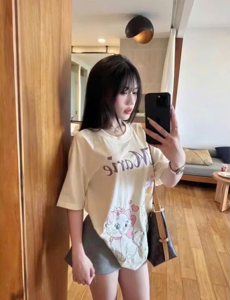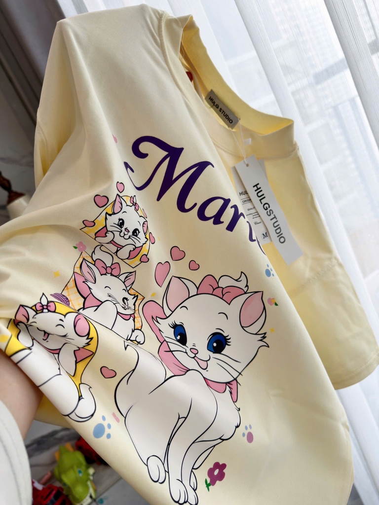 Đánh giá a568- Áo thung suông in MÈo vàng nhạt chất đẹp