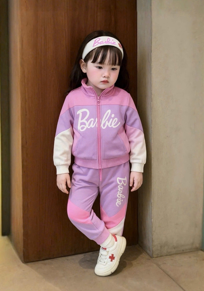 BN110-Bộ gió lót nỉ dài tay bé gái BABIE hồng tím