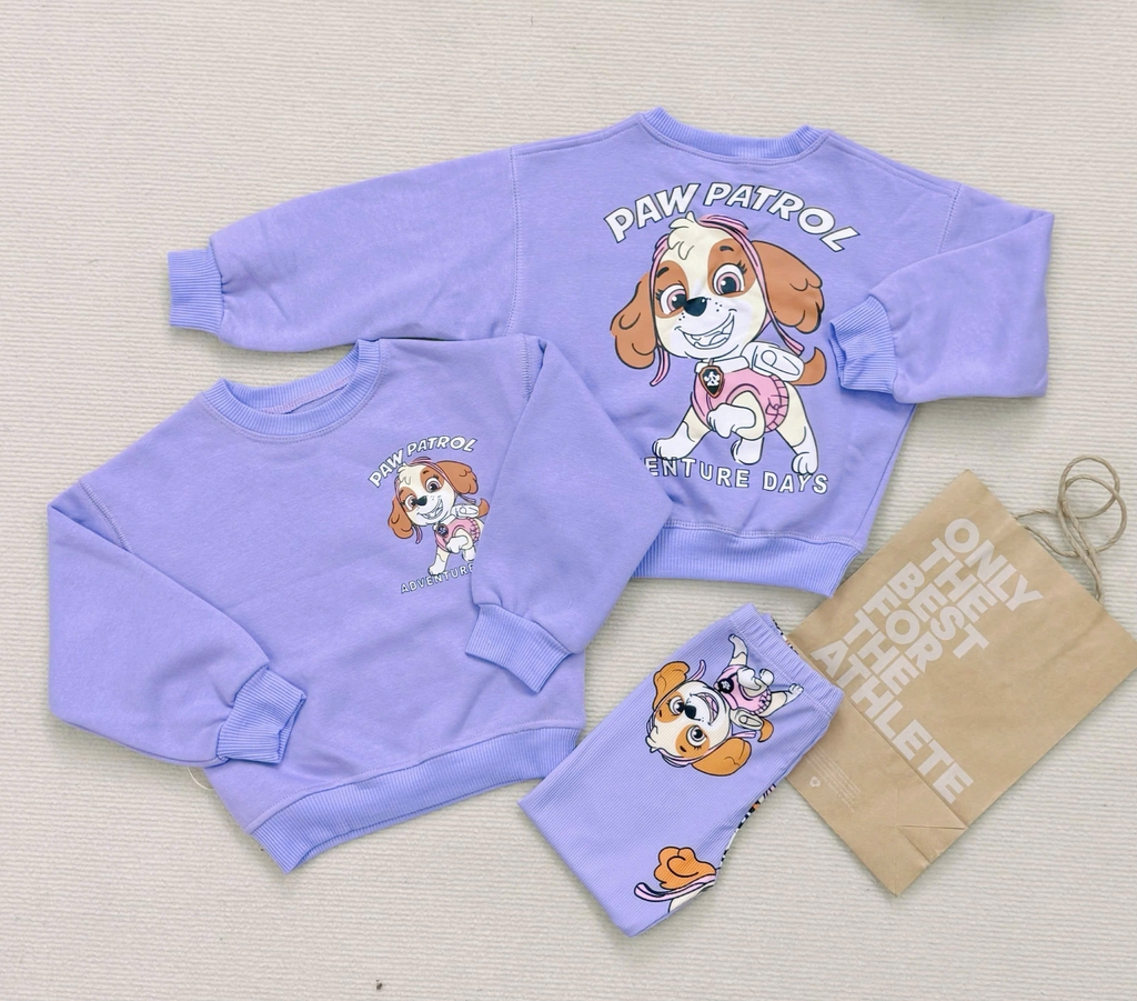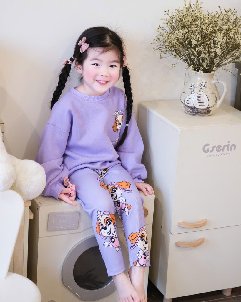 BN130-Bộ nỉ dài tay da cá bé gái màu tím VNXK