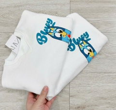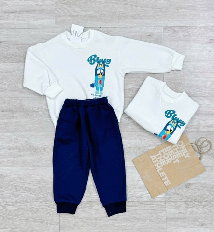 Bn134- Bộ nỉ dài tay bé trai trắng xanh hoạ tiết Cún PLuey VNXK