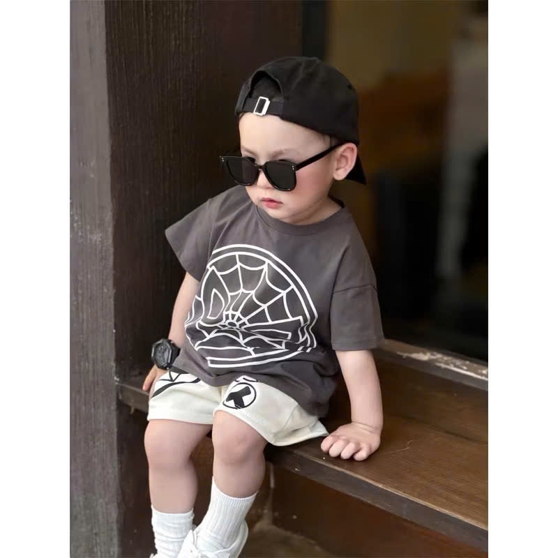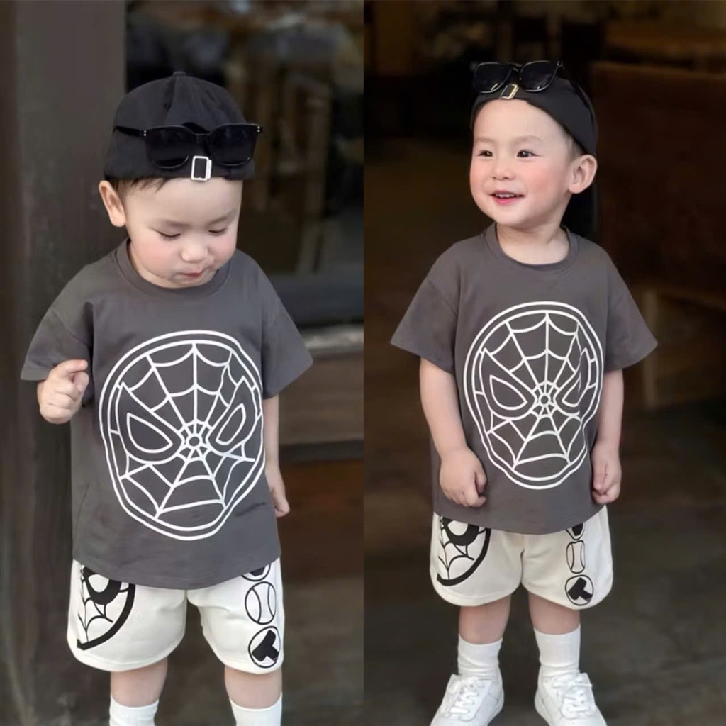 🧡🧡 BT524- Bộ áo TƠ nhện màu xám mix quần trắng hoạ tiết in