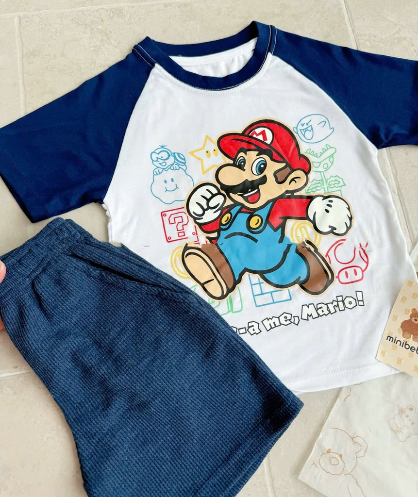 Đánh giá BT525- Bộ ao cotton trắng phối Mario mix quần cua tăm bé trai
