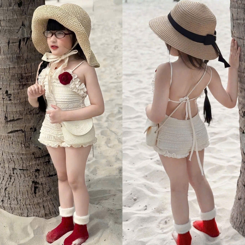 BT533-Bộ ren dây tặng kèm hoa trắng-đỏ 2 lớp