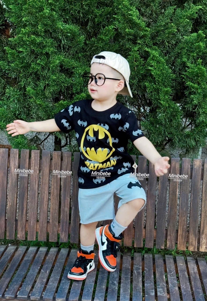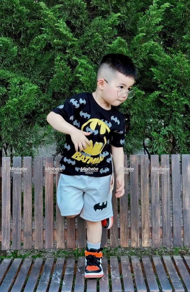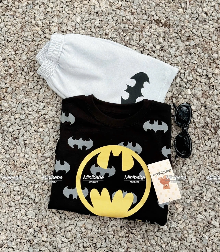 BT542 - Bộ áo cotton đen Badman mix quần nỉ mì màu ghi