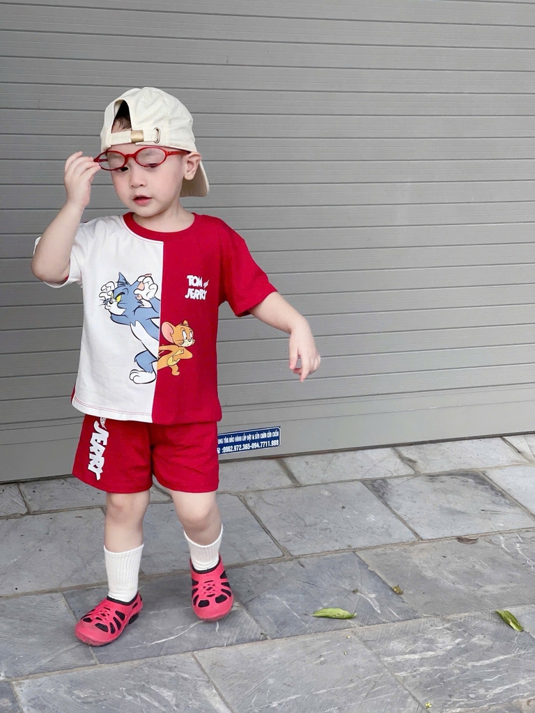 bt556- Bộ Tôm phối đỏ trắng chất coton