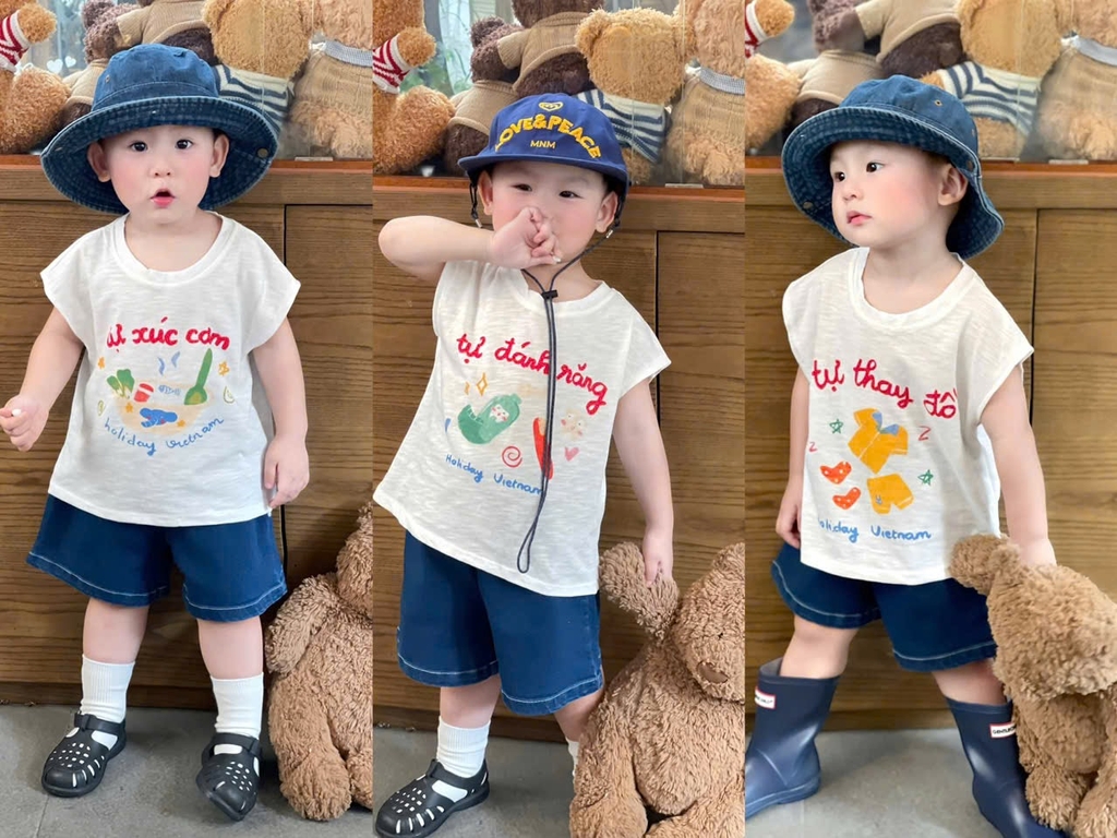 Đánh giá Bt594- Set 3 áo xược trắng in chữ tự lập trẻ em