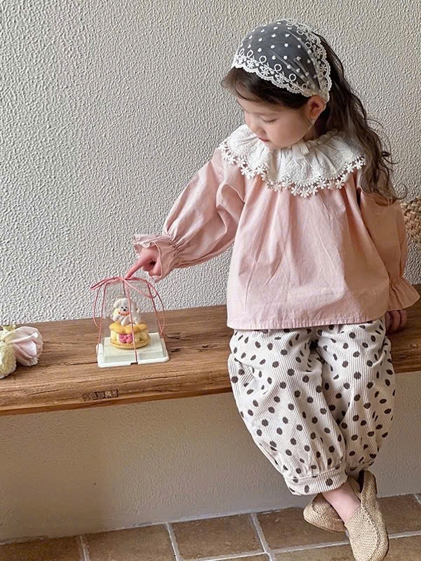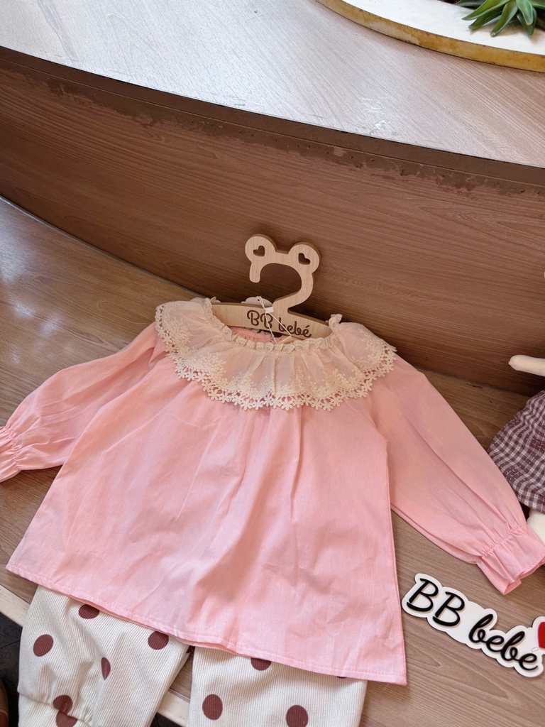 BT609-Bộ dài tay bé gái áo cổ ren phối quần dài bo gấu