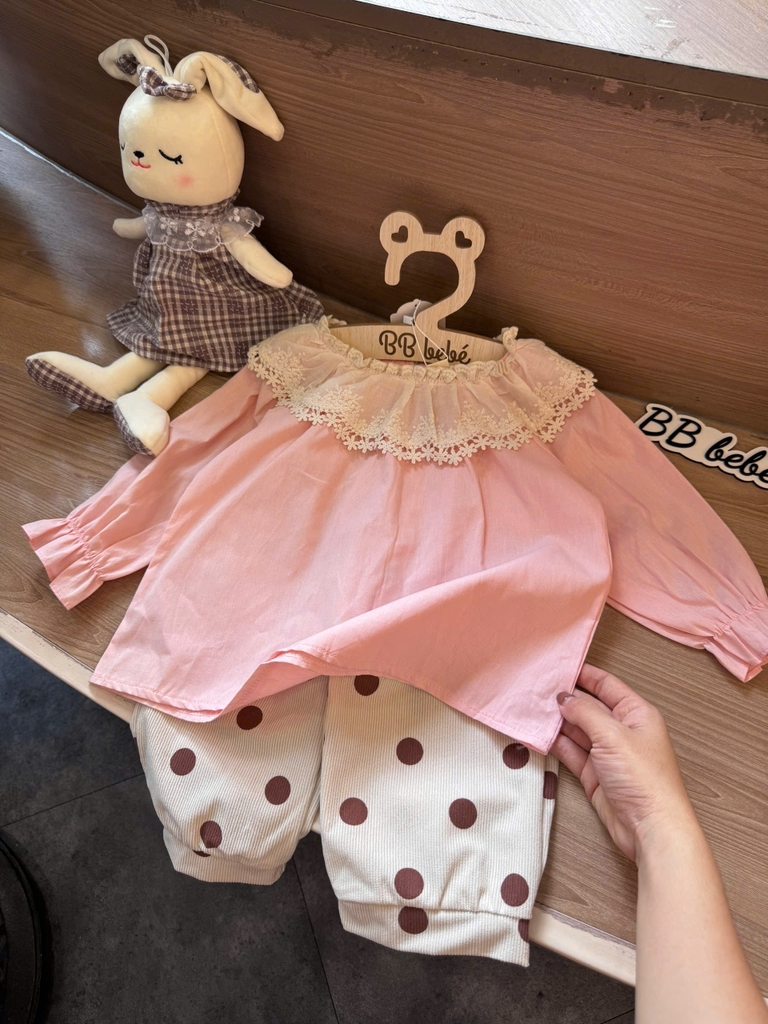 Đánh giá BT609-Bộ dài tay bé gái áo cổ ren phối quần dài bo gấu