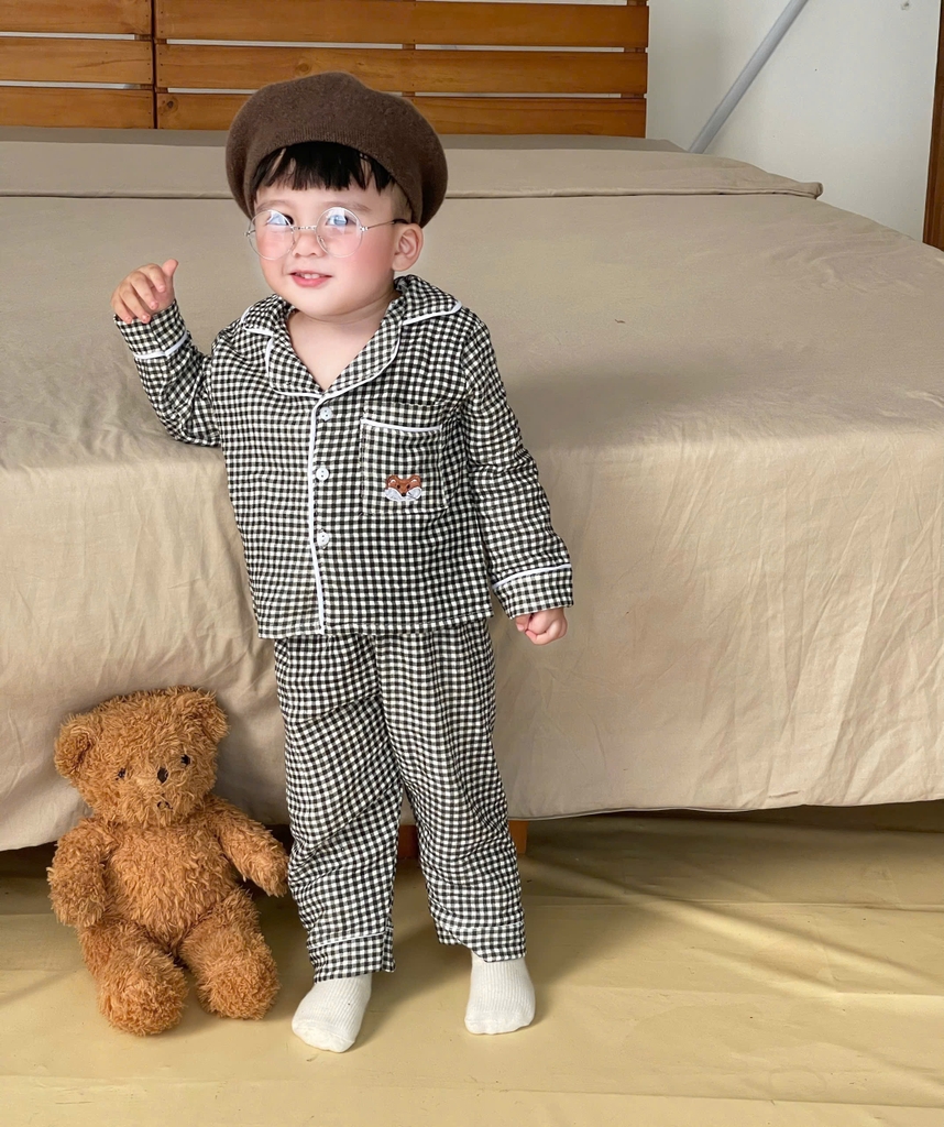 BT611- Bộ Pijjama xô đũi viền dài tay trẻ em màu sạch
